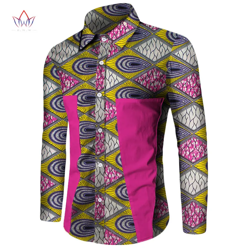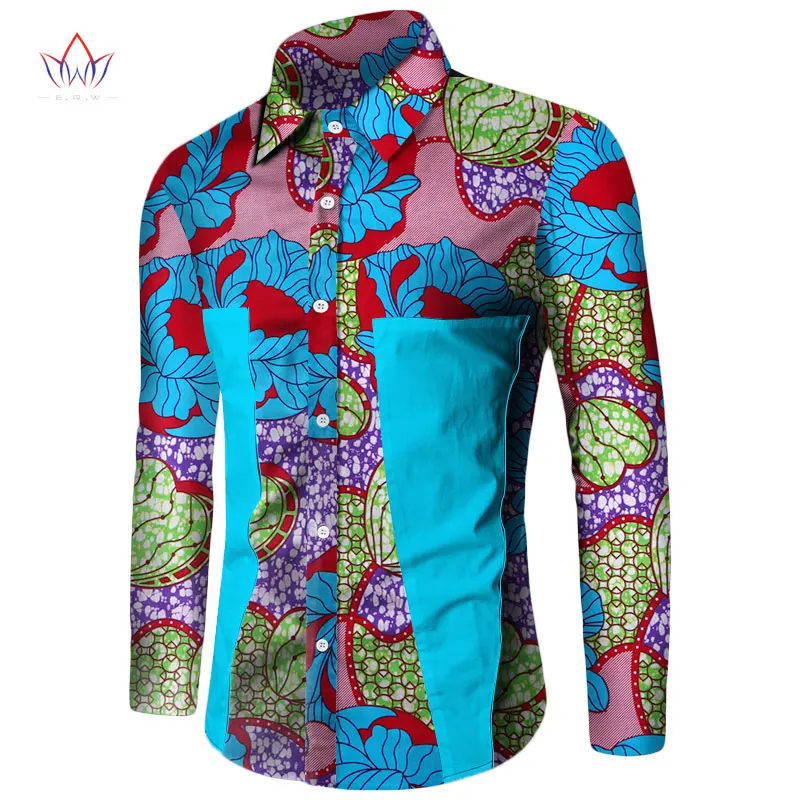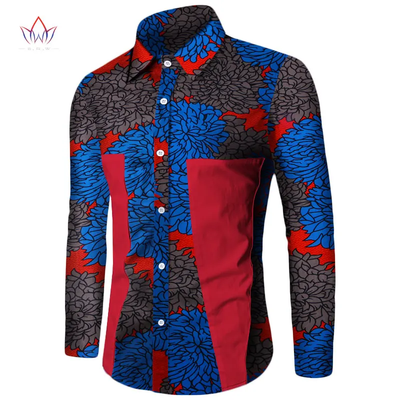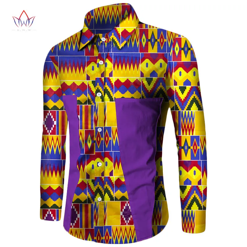 Bintarealwax размера плюс африканская рубашка для мужчин Дашики с длинным рукавом африканская одежда Лоскутная Повседневная Стильная мужская рубашка WYN350