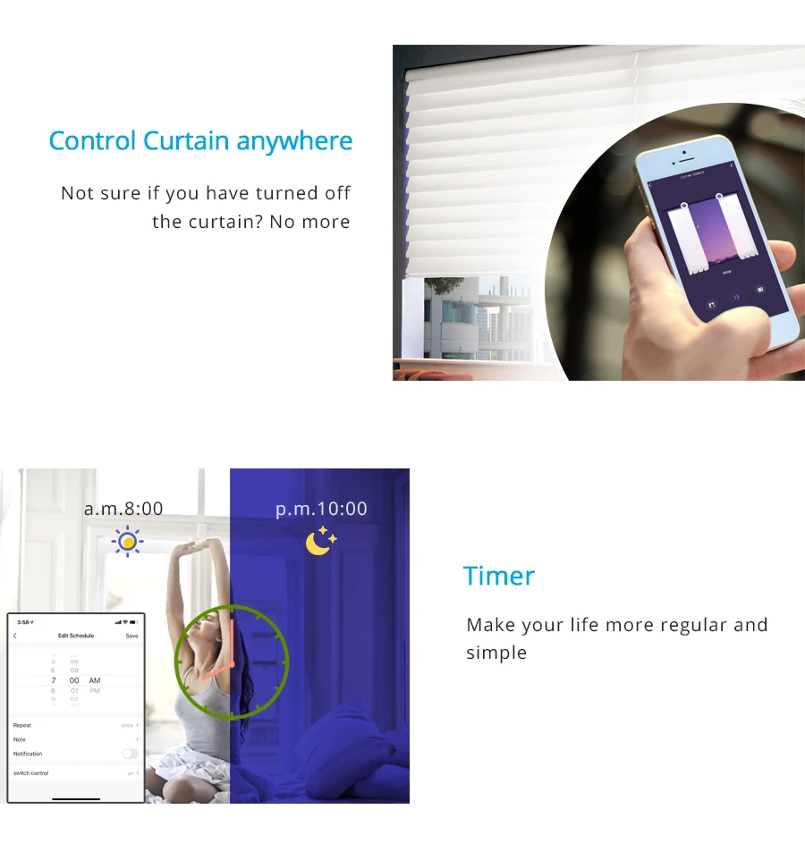 -Этот умный ролик поставляется с настенным выключателем, тип EU / US доступен.