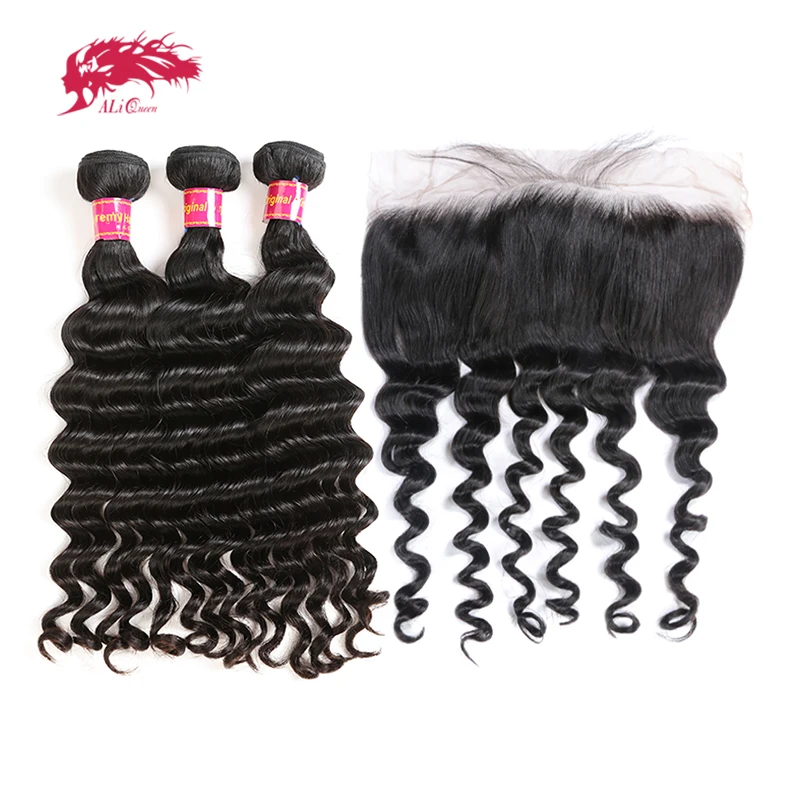 Али королева пряди волос с 13x4 кружевной фронтальной естественной волной бразильские Remy человеческие волосы пряди с закрытием естественный цвет