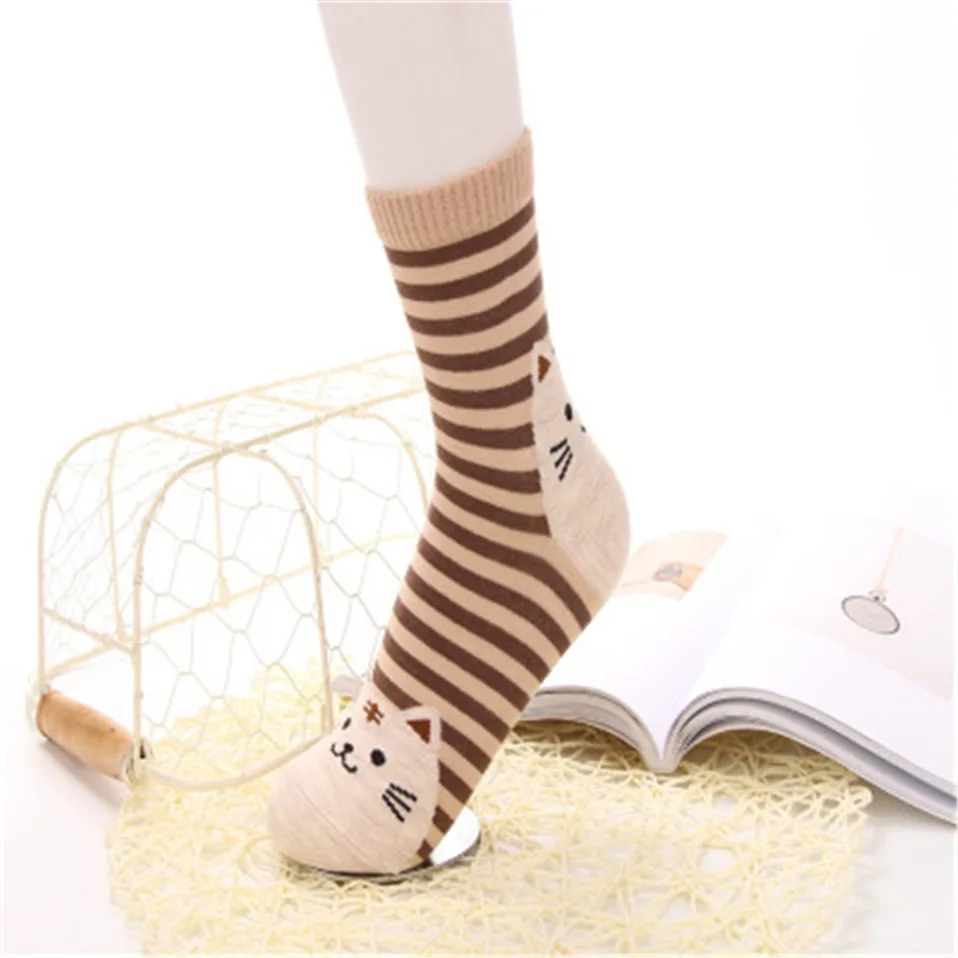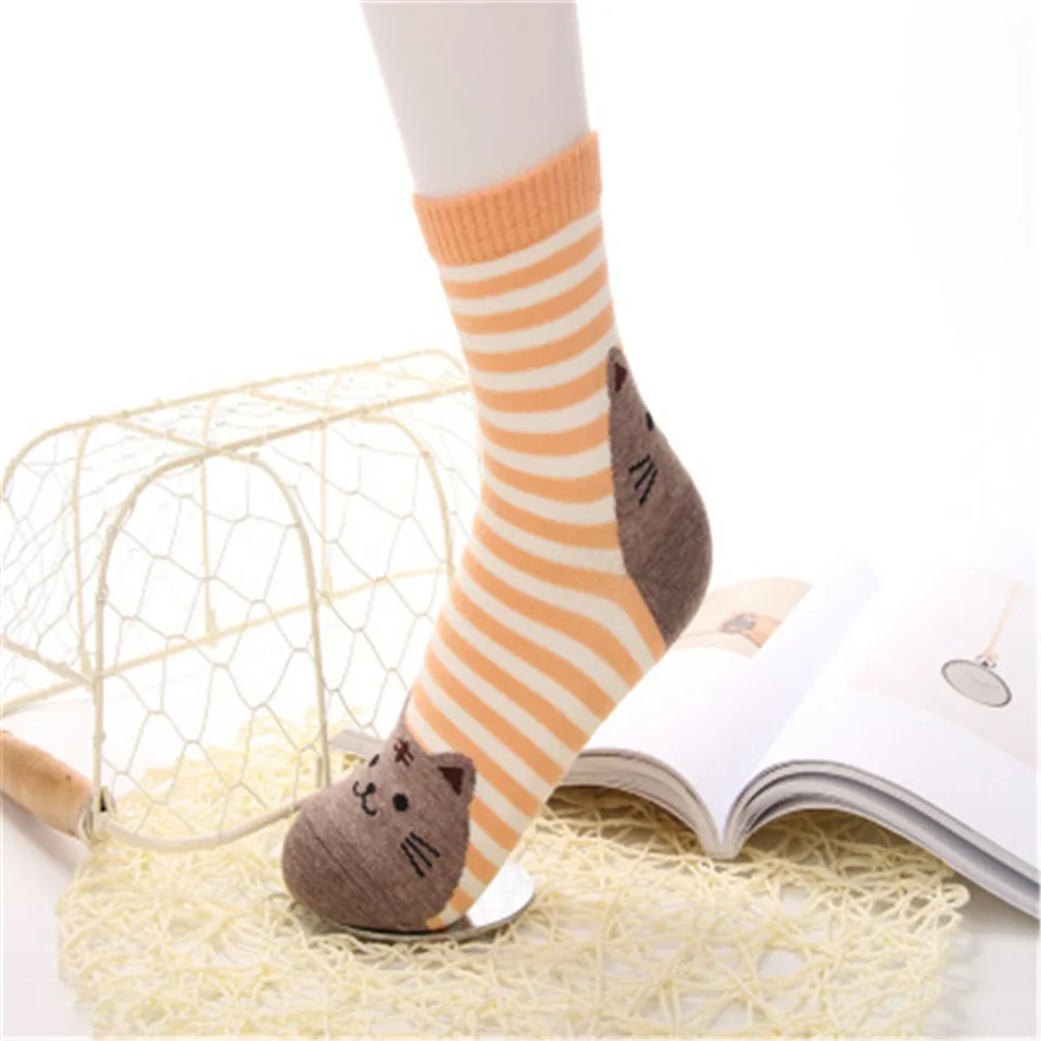 Модные носки с героями мультфильмов, женские теплые хлопковые носки в полоску с объемными принтами животных, женские носки-тапочки meias