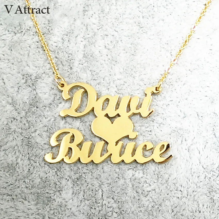 V притягивающий Серебряный чокер с сердцем, персонализированное ожерелье с именем для женщин, ювелирные изделия на заказ, Подарочная табличка, курсивные двухименные ожерелья