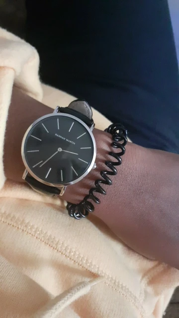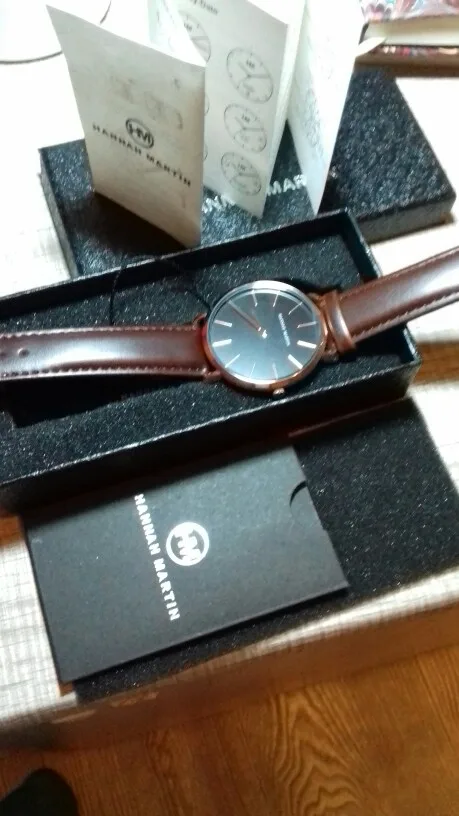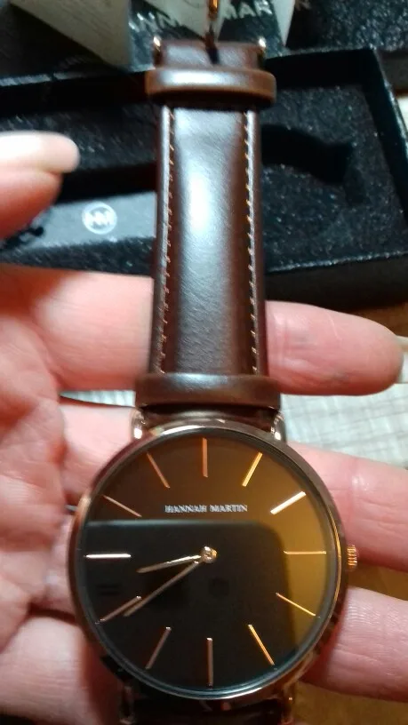 Хорошие часы для мужчин, они немного больше, чем я ожидал, но отлично работают, дизайн хороший, материал хороший, кожа не повреждена после 1 месяца использования