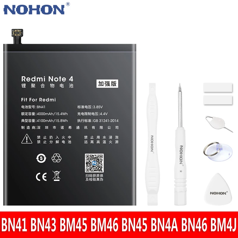 Аккумулятор NOHON сменный для Xiaomi Redmi Note 2 3 3Pro 4 4X 5 7 7Pro 8 8T 8Pro BN41 BN43 BM45 BM46 BN4A BN45 BN46 BM4J