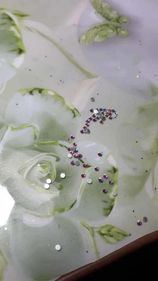 Кроме того, стеклянные стразы тяжелее пластиковых.