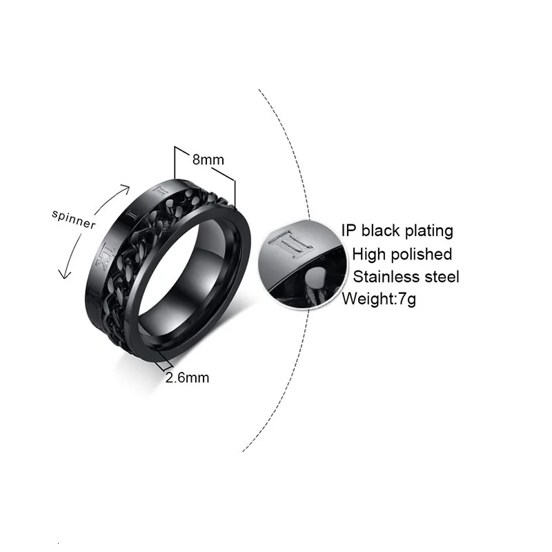 Мужские кольца, Римский номер с кубинской цепной лентой, 8 мм Спиннер из нержавеющей стали кольцо, мужское ювелирное изделие