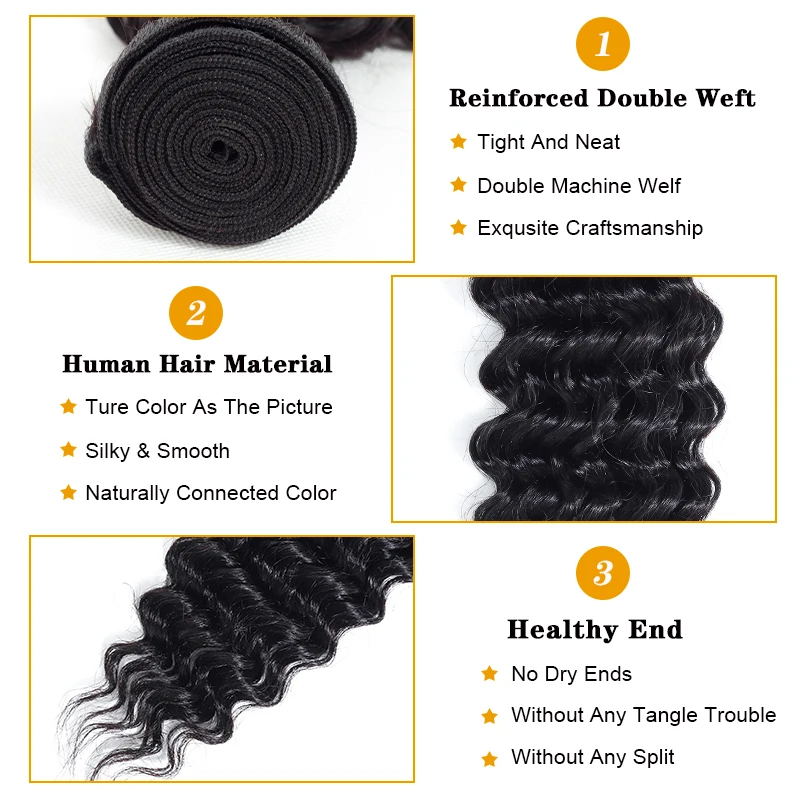Глубокая волна человеческие волосы 3 пряди с кружевом фронтальной у...