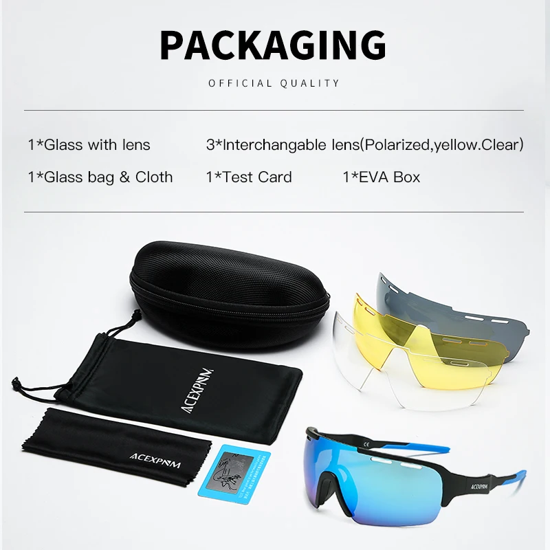 Очки для велоспорта ACEXPNM, Поляризованные, 4 линзы, UV400