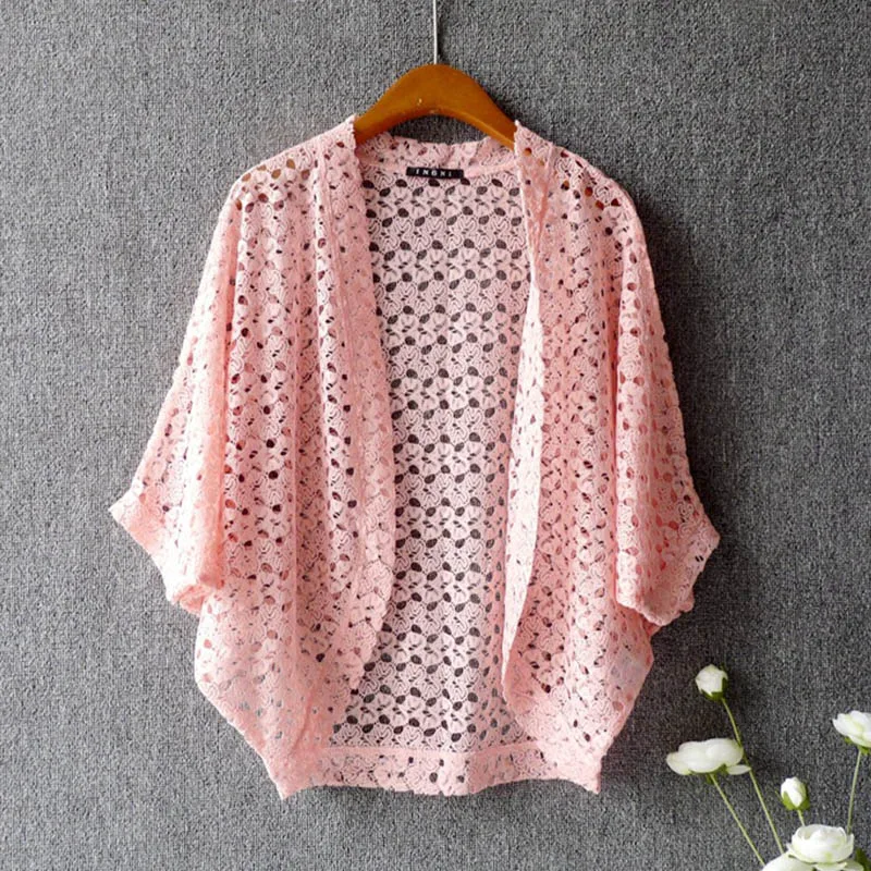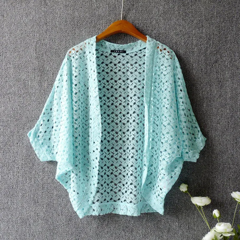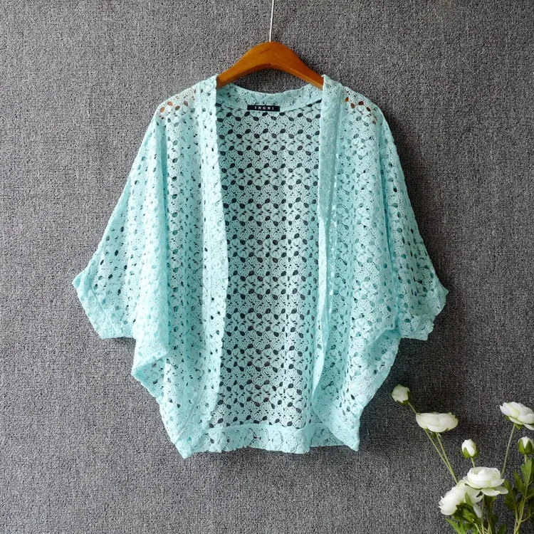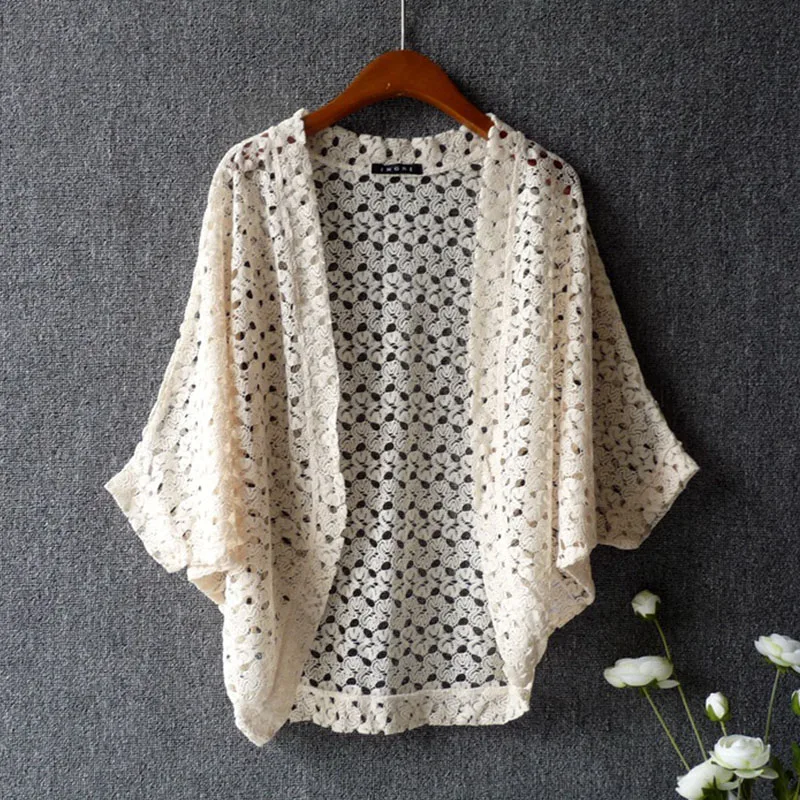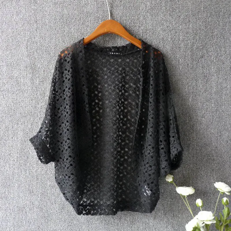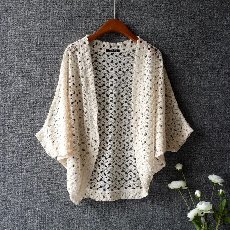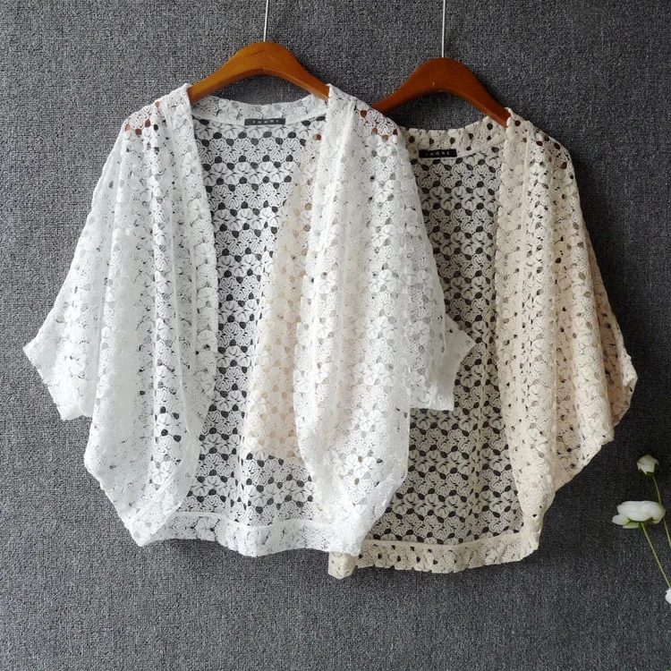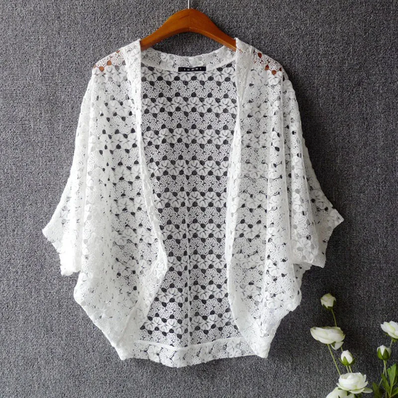 Женская кружевная рубашка, Повседневная белая ажурная рубашка с рукавами летучая мышь, кардиган U507