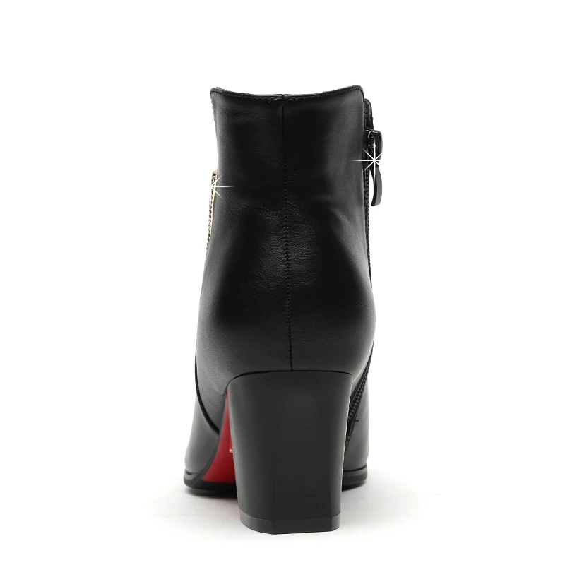 Женские ботинки челси из натуральной кожи, Черные ботильоны на толстом квадратном высоком каблуке, с круглым носком, I0026, зима-осень