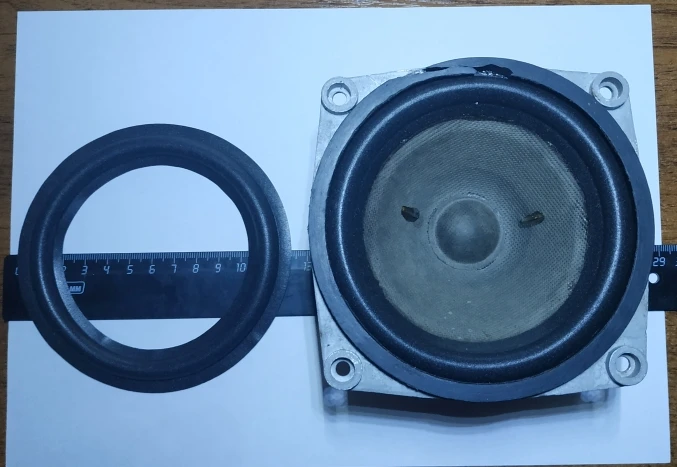 Купил подвесы 5 дюймов для ремонта динамиков 20ГДС-3 (среднечастотники от S90). Внутренний диаметр подходит, а наружный оказался больше. Пришлись резиновое уплотнение кольцо разрезать, тем самым увеличить его диаметр (на фото видно). Теперь поют!