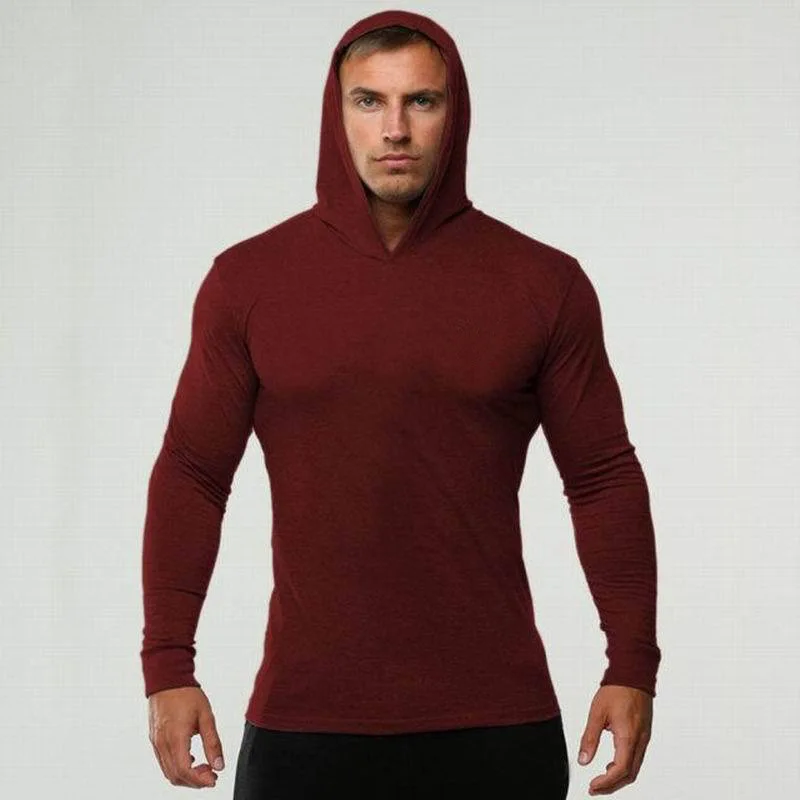 Новинка, рубашки с длинным рукавом, толстовки для фитнеса, Быстросохнущий пуловер, однотонная мужская одежда с капюшоном, черный Свитшот, мужская одежда
