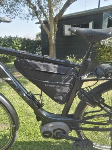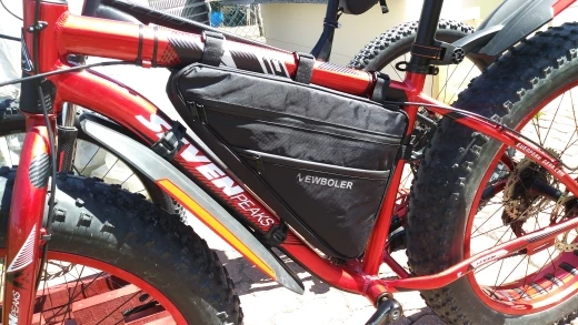 ,Сумка пришла быстро. На вид качественная. В реальности кажется маленькой по сравнению с фотографиями. Не внушают доверия лямки крепления на раму. Могут оторваться.