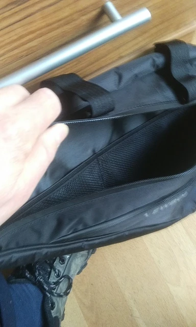 Доволен, очень. Очень хорошая сумка и продавец очень классный советую. Буду и дальше покупать в этом магазине. У меня правда форма рамы не ровная и сумка не так лежит как на фото, но все поместилось и ещё место осталось.