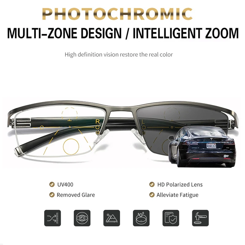 Прогрессивные фотохромные очки для чтения с подвижными дужками и по...