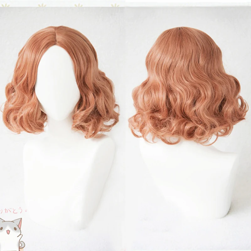 Парик для косплея P5 Persona 5 Хару Окумура, термостойкий, с короткими вьющимися волосами, смешанные, оранжевые, розовые, + шапочка для парика