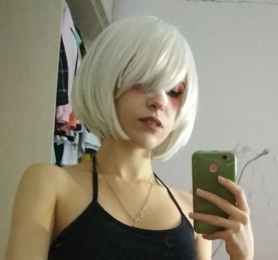 Костюм героини NieR:Automata 2B YoRHa 2 Type B, короткий серебристо-белый Бобо, термостойкий, для косплея, парик (не включает повязку на глаза)