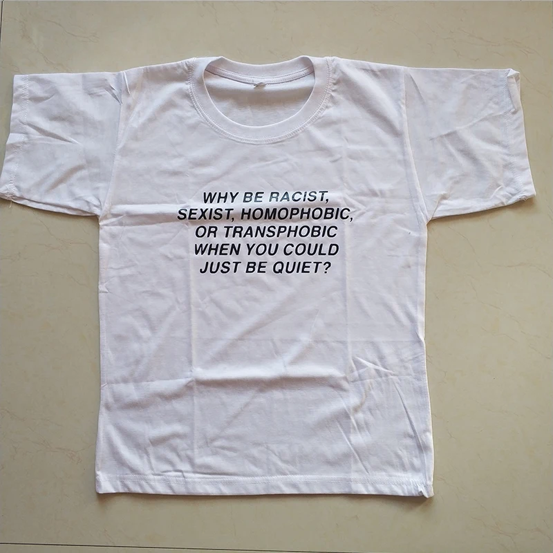 Футболка Why Be Racist while Be Just Be Quiet, одежда Tumblr, футболка унисекс, футболка с рисунком для женщин