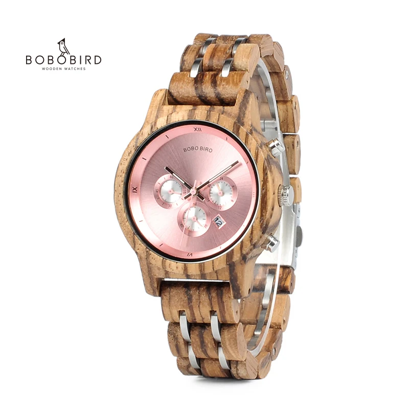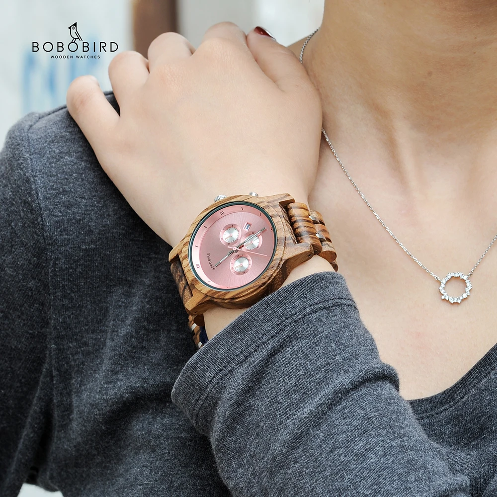 Женские часы BOBO BIRD, деревянные женские кварцевые часы, секундомер для Woemen, женские часы на заказ, кварцевые наручные часы P18