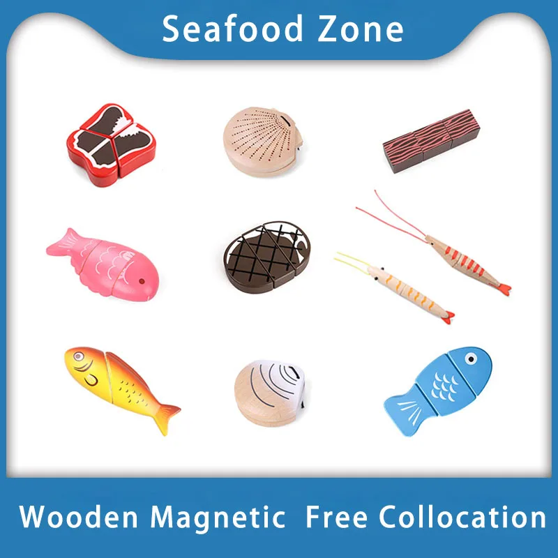 Игрушка Woo, игрушки для детей, деревянная кухонная игрушка для детей, кухонные предметы, деревянная рыба, мясо, морепродукты, детский кухонный набор игрушек