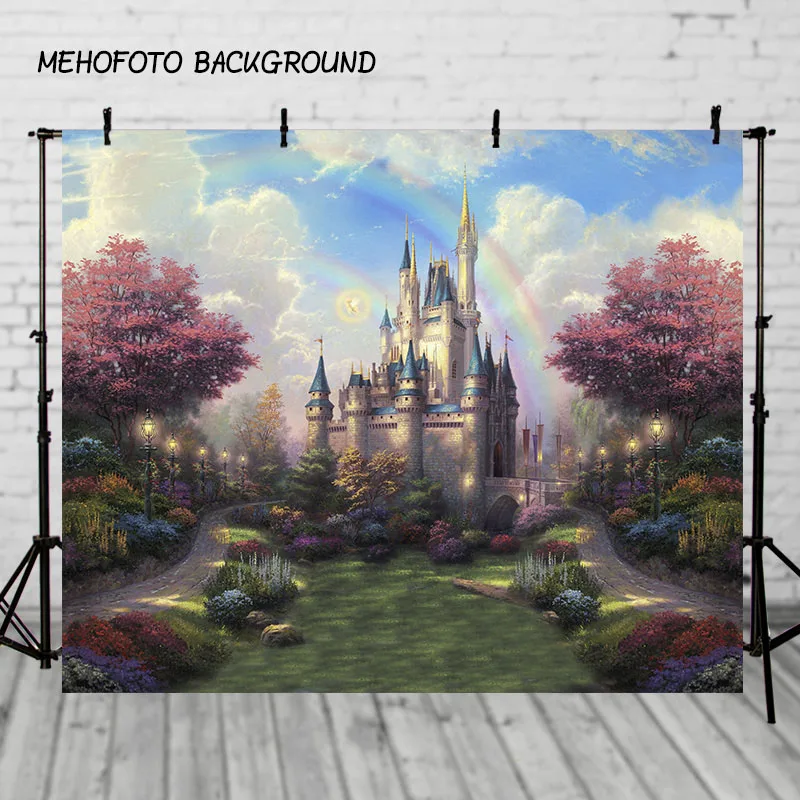 Золушка Принцесса замок, феи Радуга Небо зеленый сад фото фон Индивидуальные фотографии фоны для фотостудии