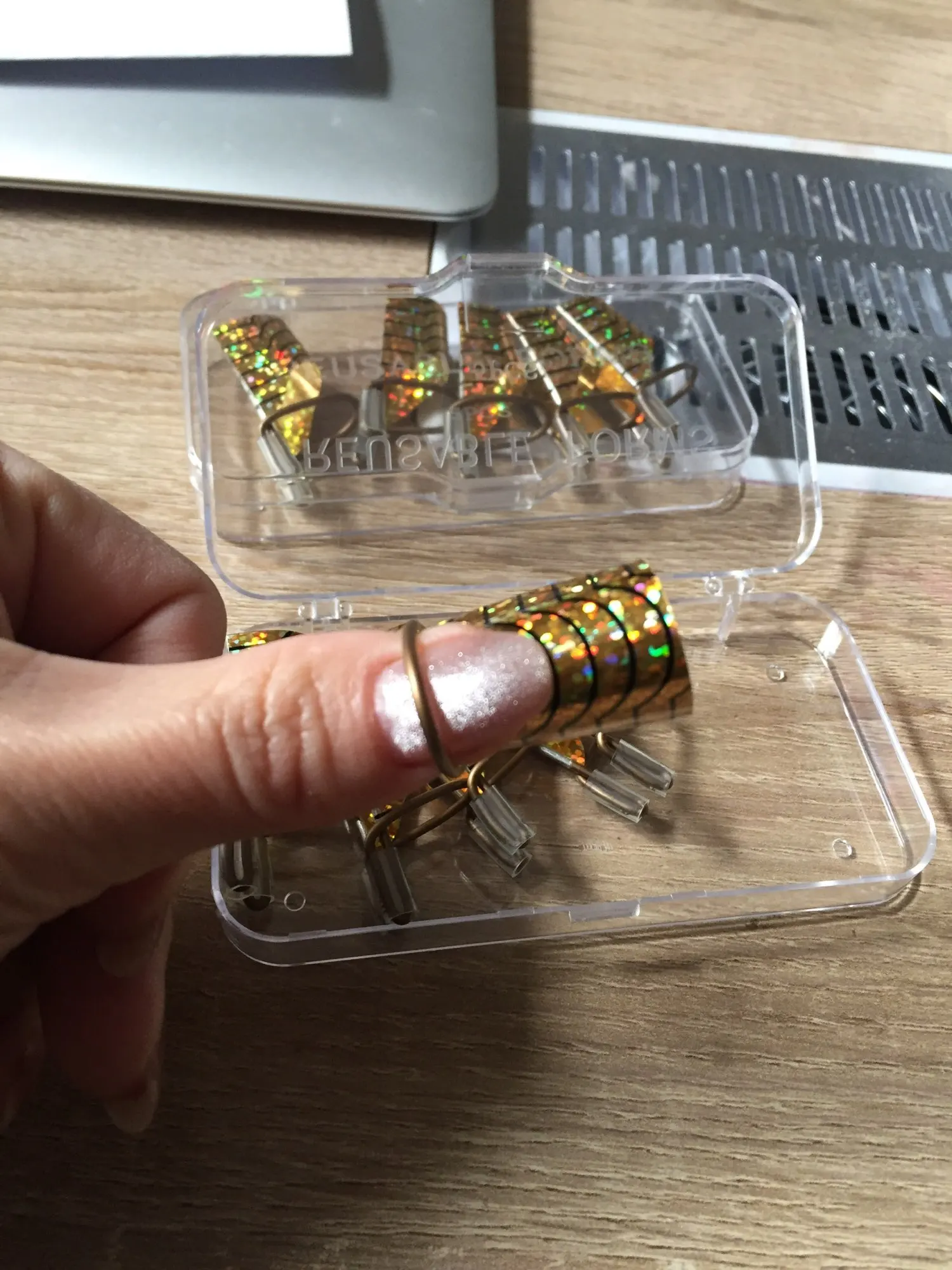 Я думала они металлические, а они из бумаги(. Бумага приклеена к проволоке скотчем. Пользоваться невозможно - типс не прилегает к ногтю плотно(. Купила за 119р, но даже столько эта ерунда не стоит. Пришли за 3 недели (МО, Подольск).
