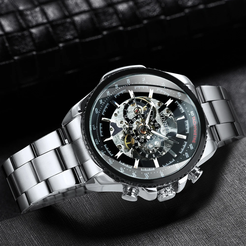 Часы наручные WINNER Мужские механические, автоматические Роскошные Брендовые Часы-скелетоны из нержавеющей стали, с ремешком, s 2021