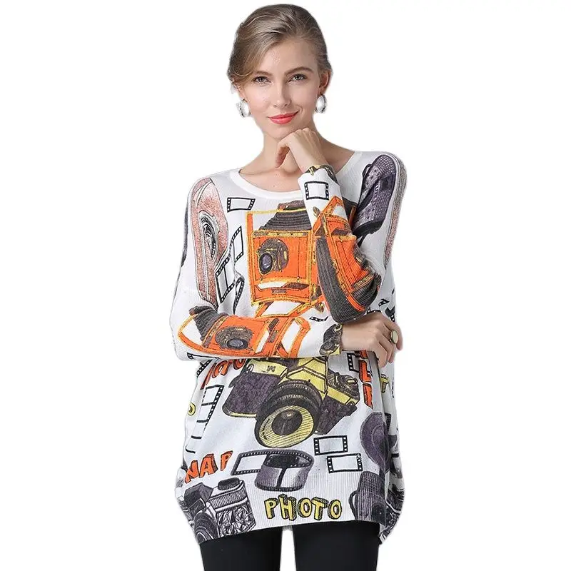 Женский свитер с круглым вырезом XIKOI, повседневный трикотажный пуловер в Корейском стиле с рукавами «летучая мышь» и принтом, большие размеры