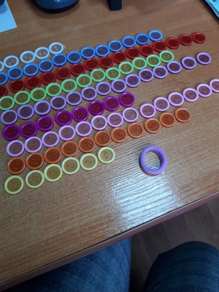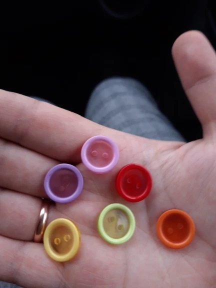 Уже и не надеялась, рада, что дошел мой заказ, пуговички классные но россыпью - один цвет по пять штук, другой по двенадцать, и так далее а бесцветных только три пуговки, в целом очень красивые. Рекомендую, и спасибо за подарочек.