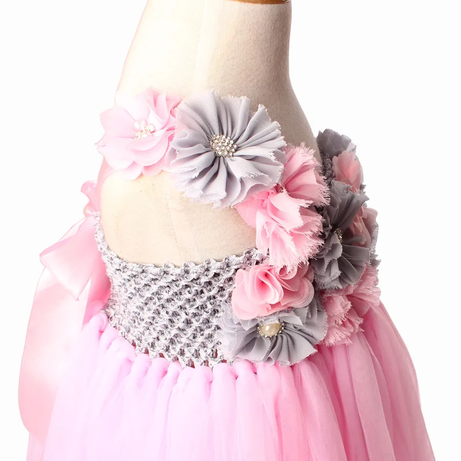 Светильник-розовое Тюлевое платье-пачка с цветами для девочек, детское платье на свадьбу, день рождения, бальное платье для девочки, пачка