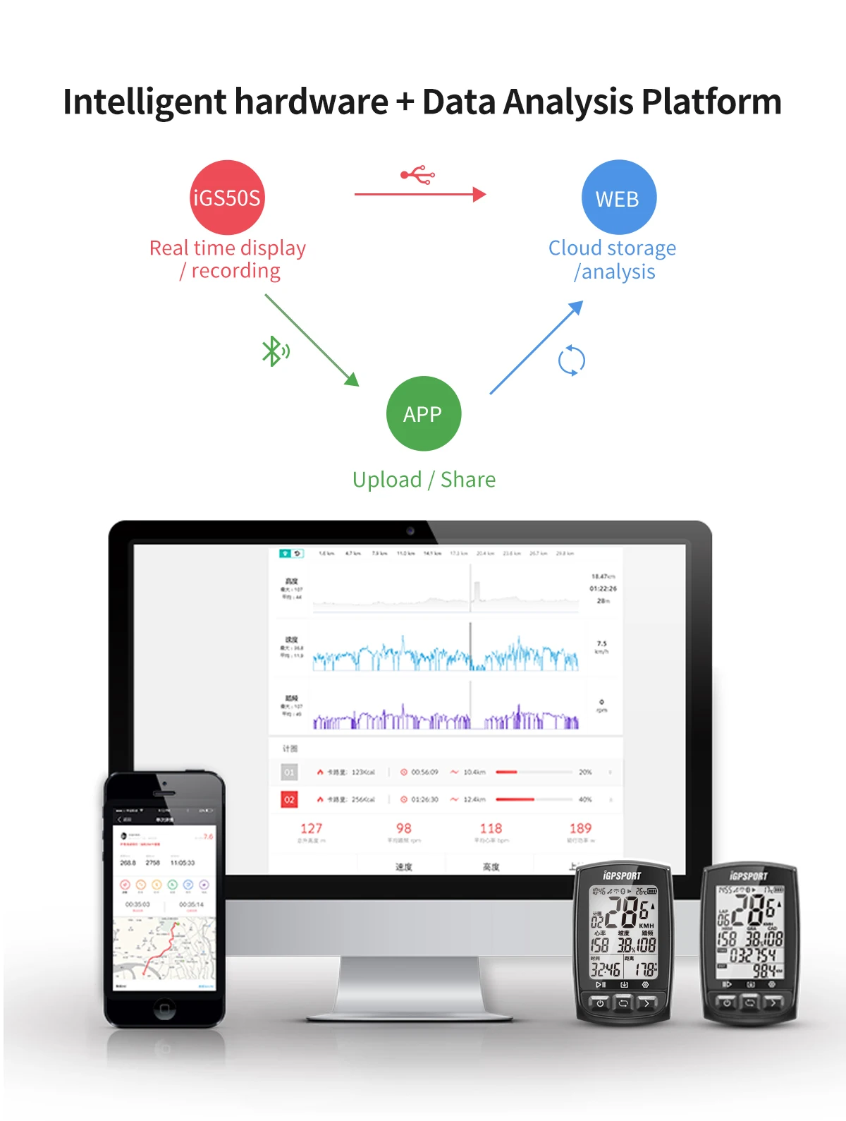 Компьютер для велосипеда iGPSPORT iGS50S, GPS-навигатор, спидометр ...