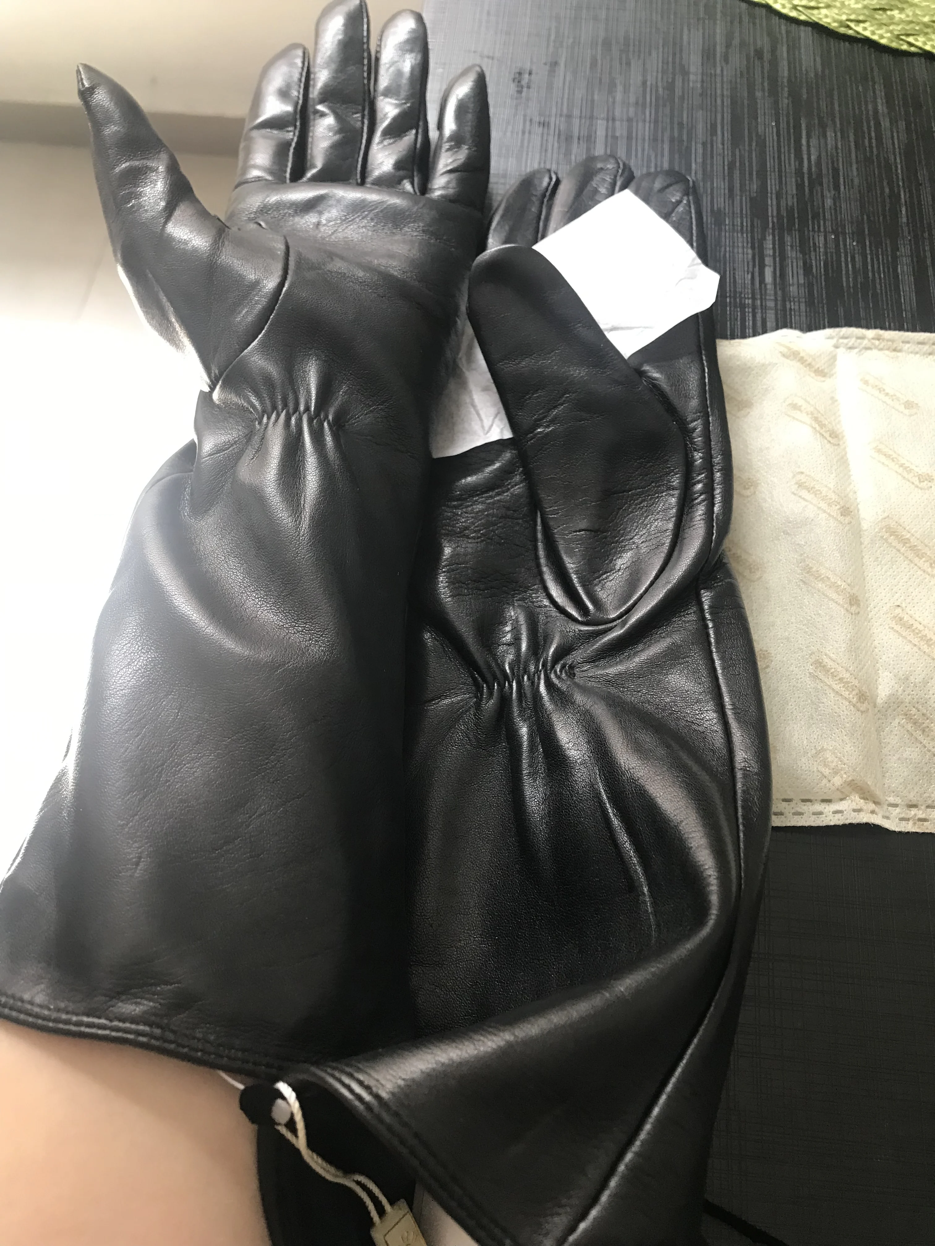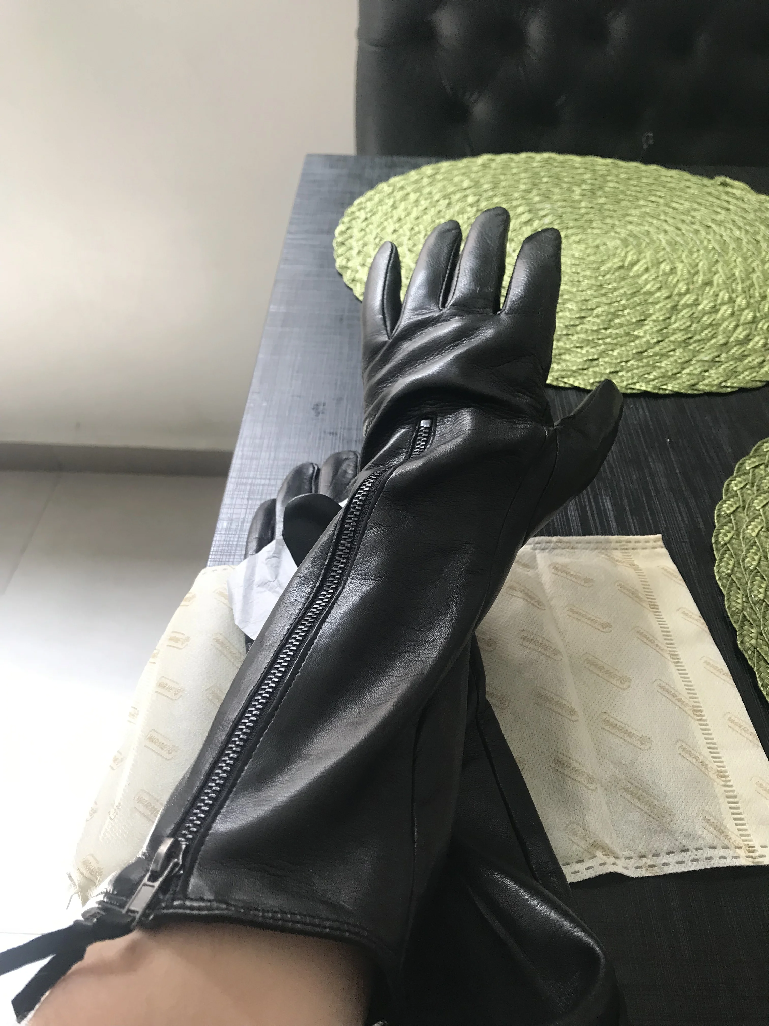 Женские перчатки из натуральной кожи, осенне-зимние черные перчатки из овчины на молнии, длинные стильные тонкие бархатные перчатки с пятью пальцами, L031NQ