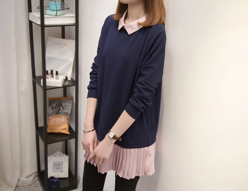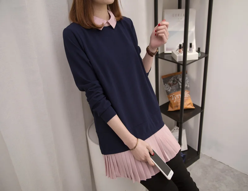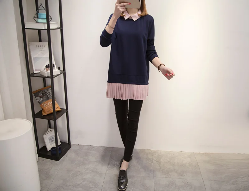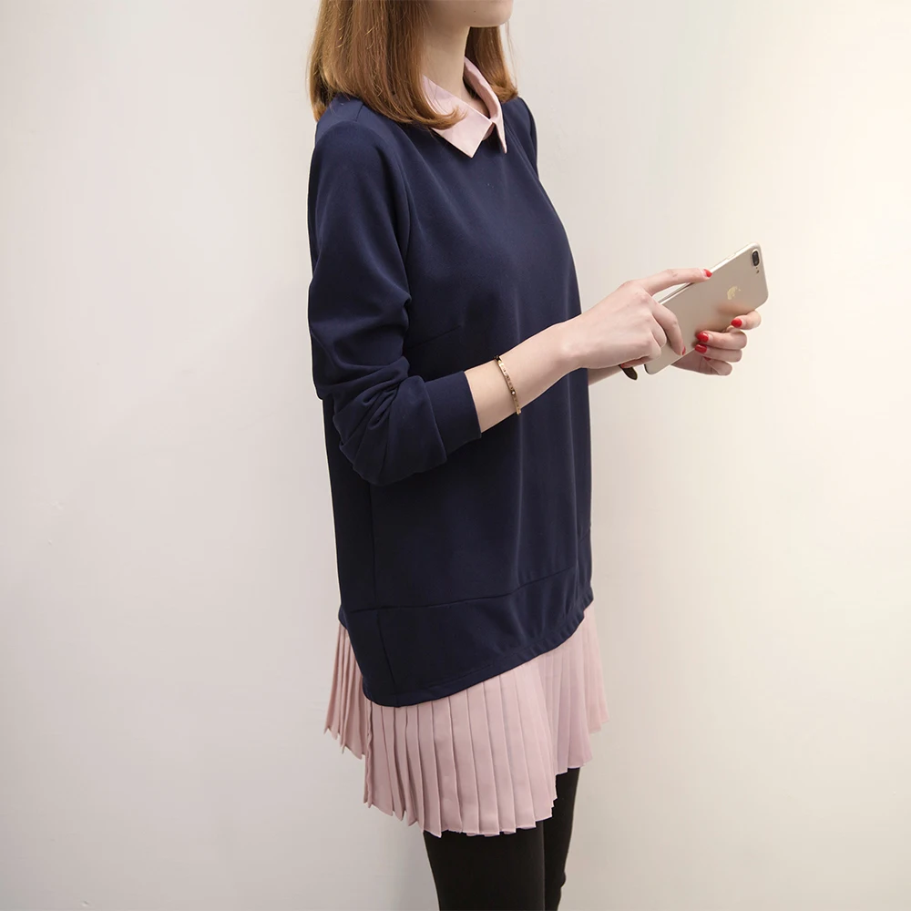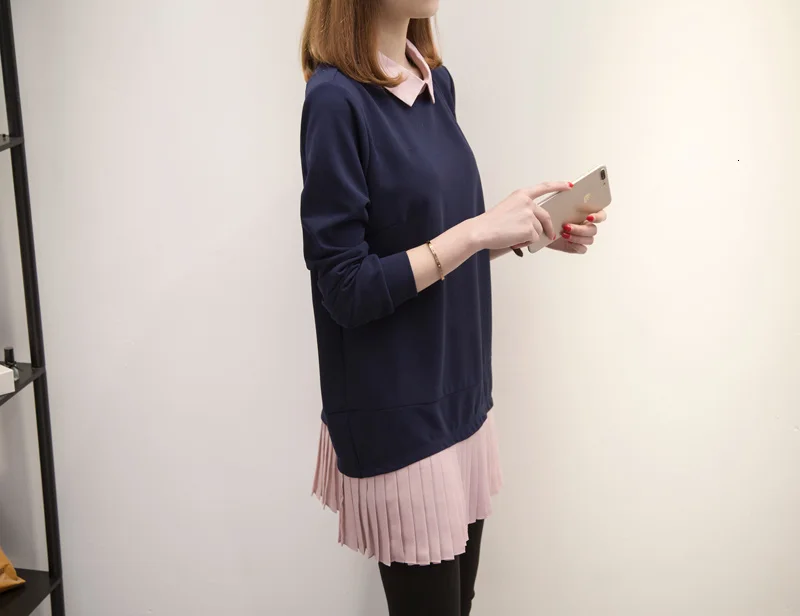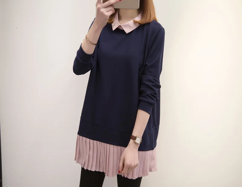 Nkandby женские блузки 2021 осенняя одежда Свободная Женская туника с воротником Питер Пэн Топы плиссированные шифоновые Лоскутные рубашки