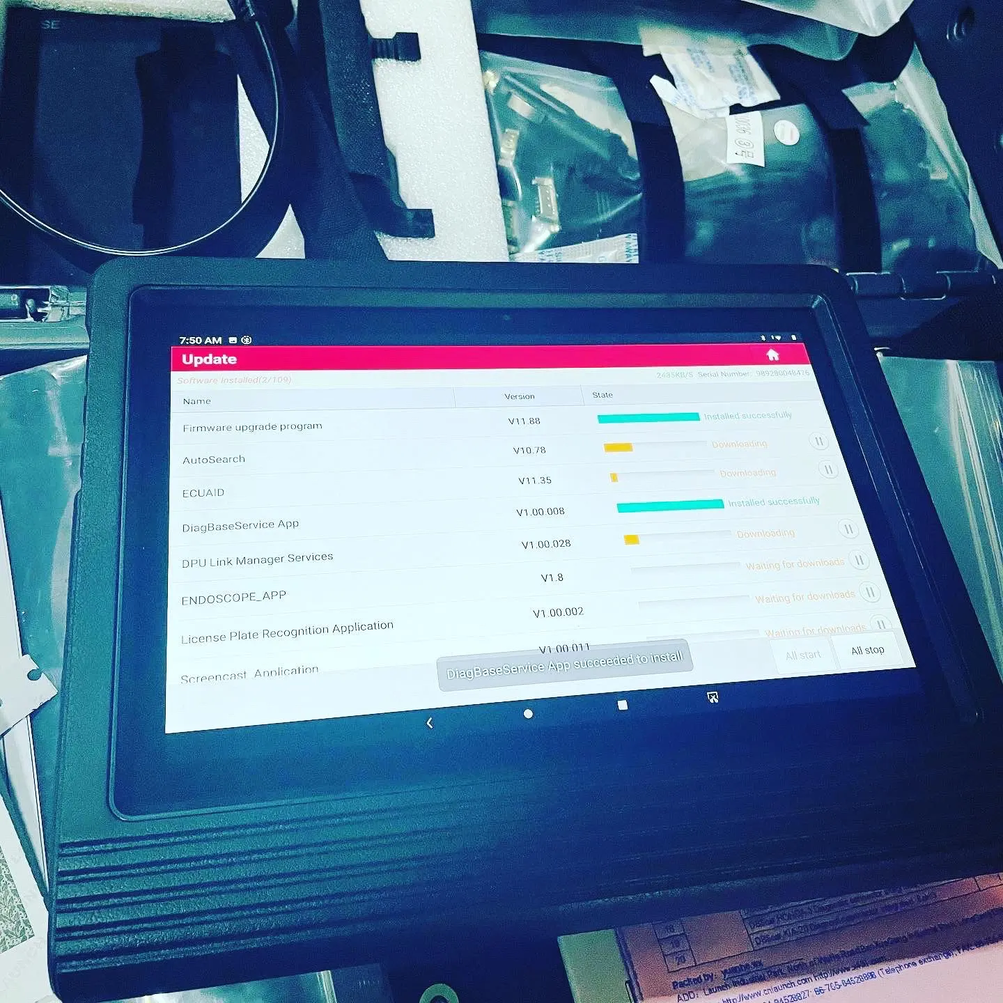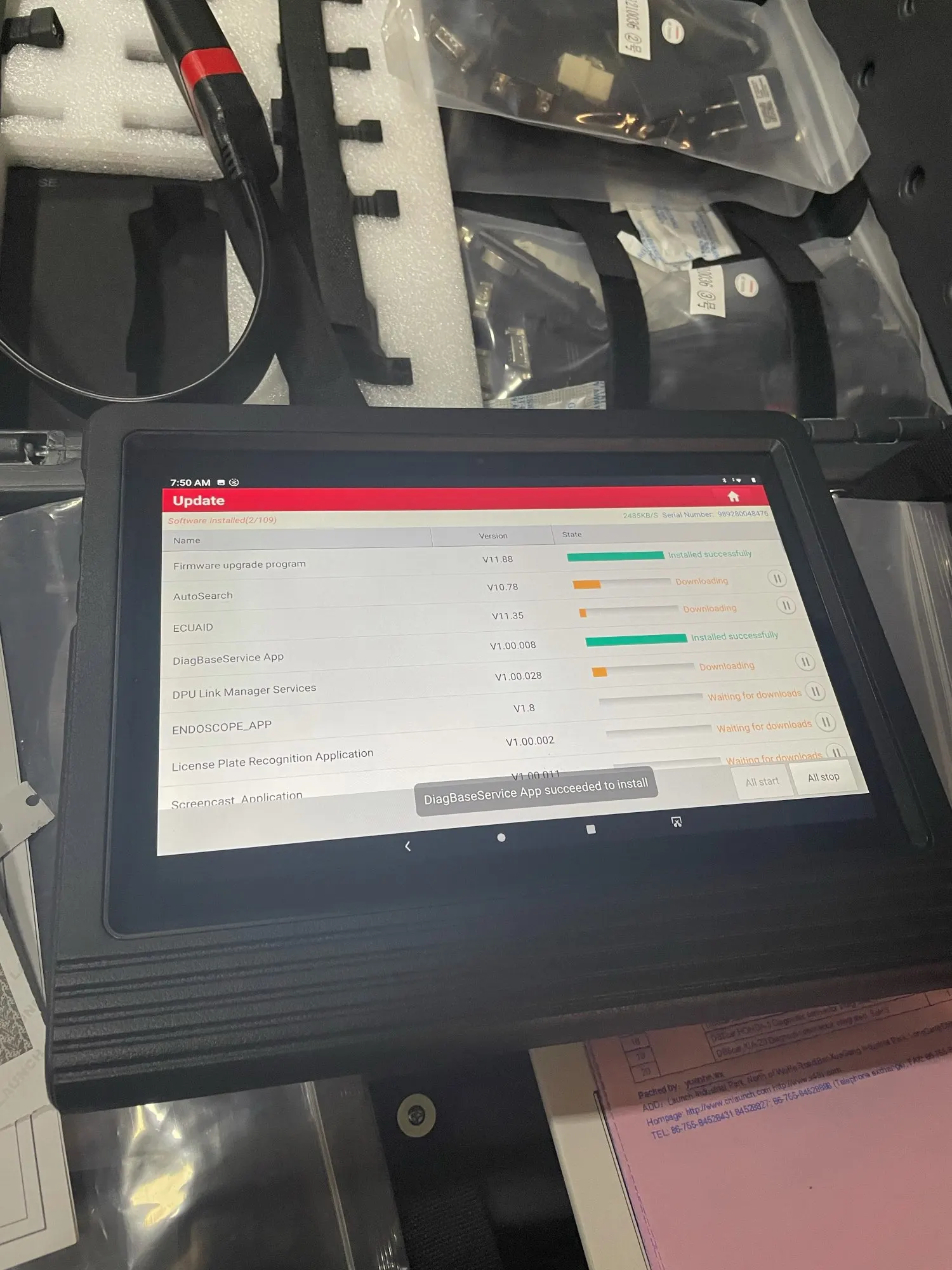 Великолепный набор, отличный продавец. Доставили быстро, без повреждений. После включения планшет (Lenovo TB-X605FC) сразу установил обновления Андроид версии 9.0 и драйвера для связи с адаптером, при этом уровень заряда АКБ был около 82%. Адаптер (DS301) зарегистрировал без проблем. Сразу же закачал БД по более чем 102 марок а/м. Без регистрации был доступен только режим EOBD. Обновилась и версия диагностического ПО. Сейчас она V6.01.008. Кстати, на планшете установлены и работают Google-services, в т.ч. и PlayMarket. После загрузки и установки всех баз и обновлений осталось свободным 12GB из 32GB.