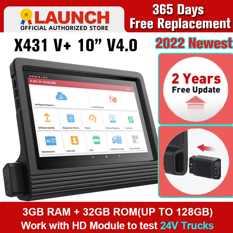 Диагностический сканер Launch X431 V plus, диагностический прибор для автомобиля, 10 дюймов, X431 V + V4.0, OBD2
