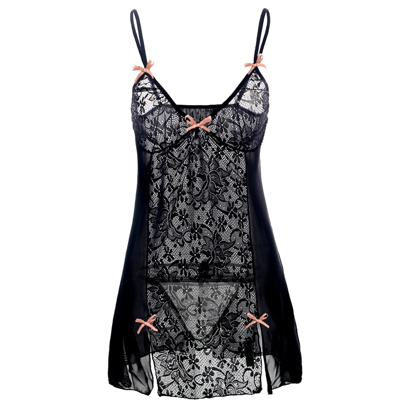 Женская кружевная ночная рубашка с цветочным рисунком, сексуальная ночная рубашка с глубоким v-образным вырезом, прозрачная сетчатая сорочка, летняя одежда для сна, ночная рубашка размера плюс