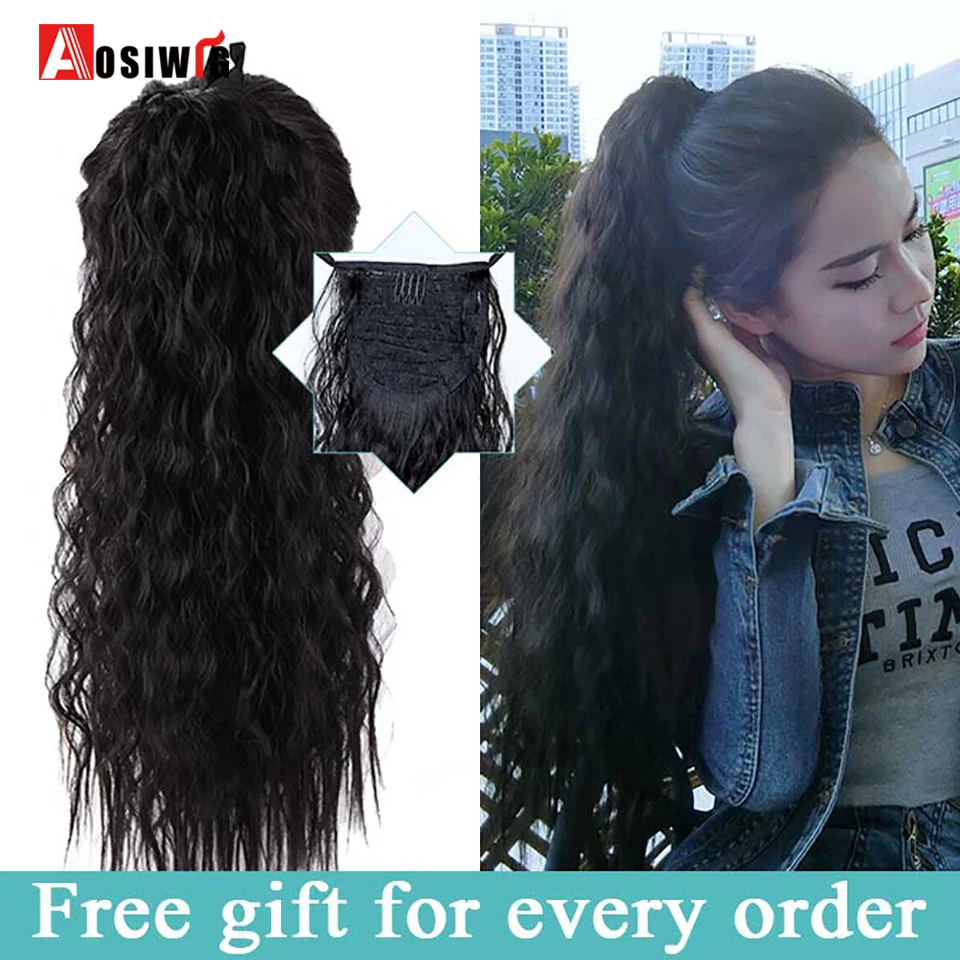 AOSIWIG длинный кудрявый шиньон для конского хвоста термостойкий синтетический хвост на зажиме длинный зажим для конского хвоста удлинитель волос