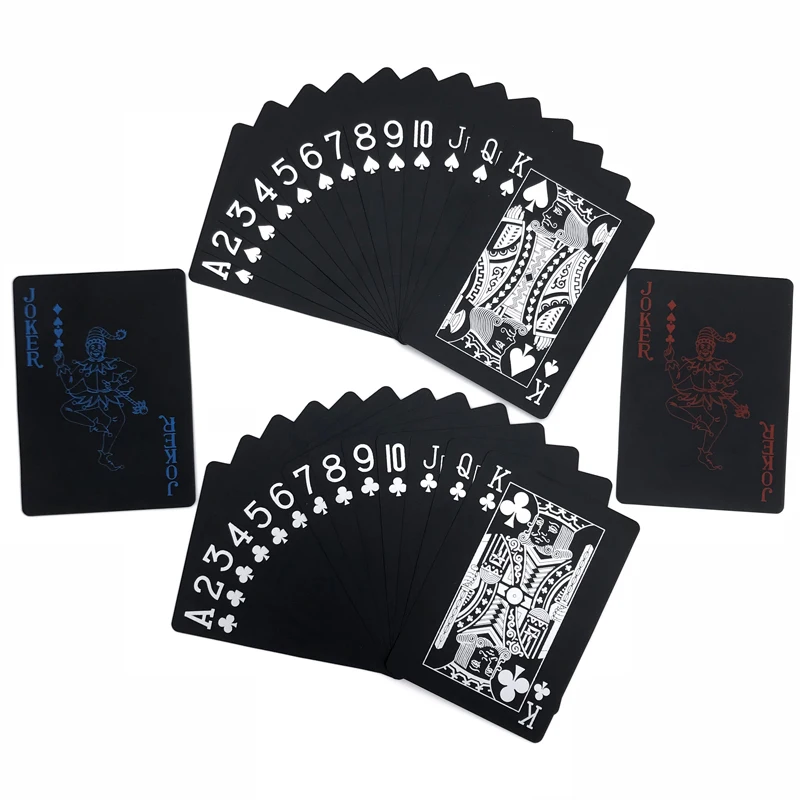 Новые высококачественные красные и синие гладкие водонепроницаемые черные пластиковые игральные карты Texas Hold'em Poker Baccarat настольные игры 63*88 мм qenueson