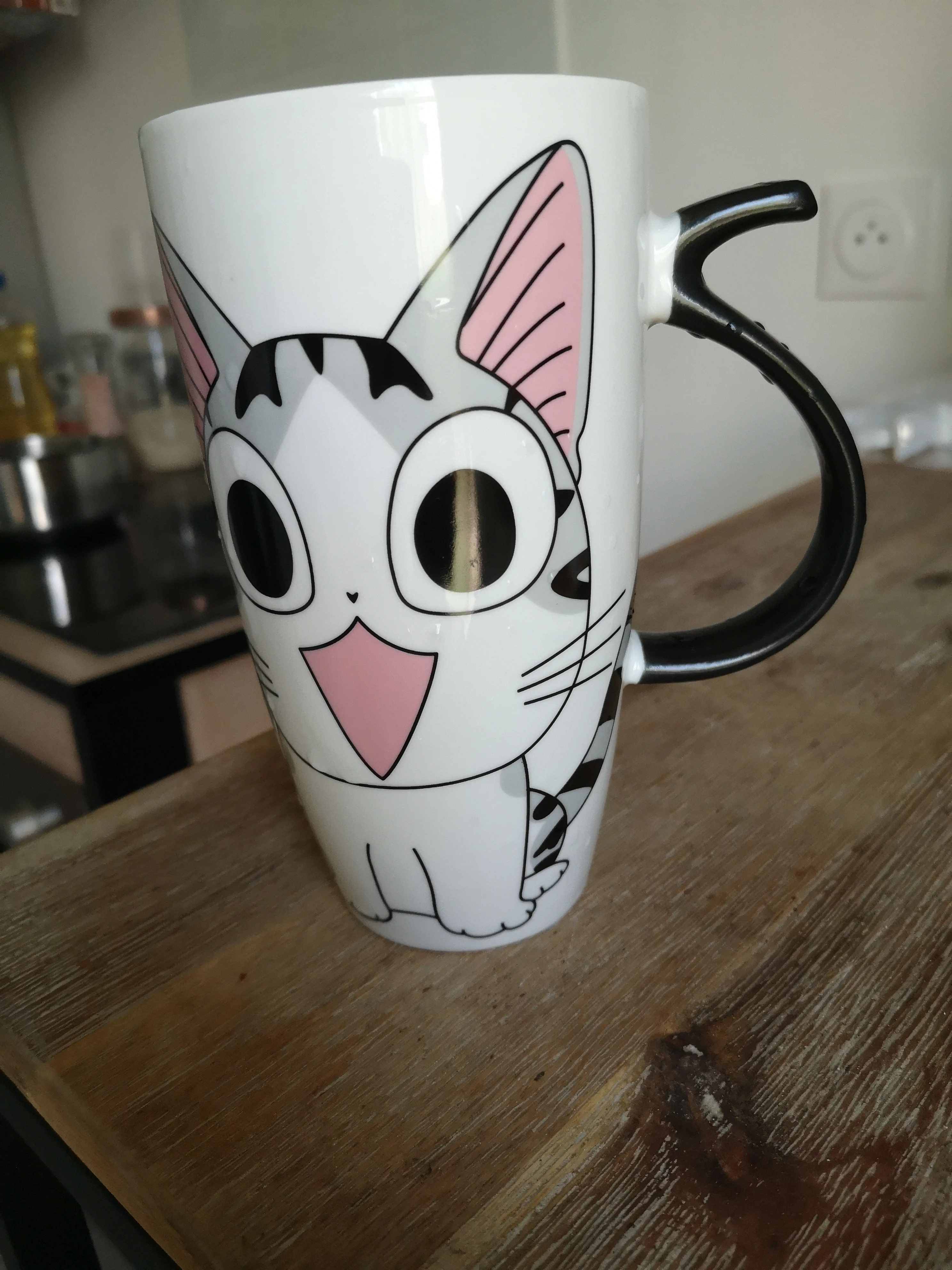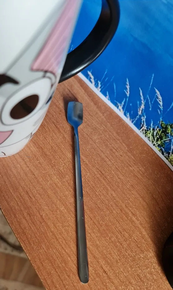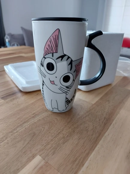 очень большая кружка, думала, что будет меньше. ложка слишком маленькая(в длину) для этой кружки, она тонет и это неудобно. кружка неприятно пахнет, долго избавлялась от запаха, а так в целом довольна, рисунок не смазан, все хорошо