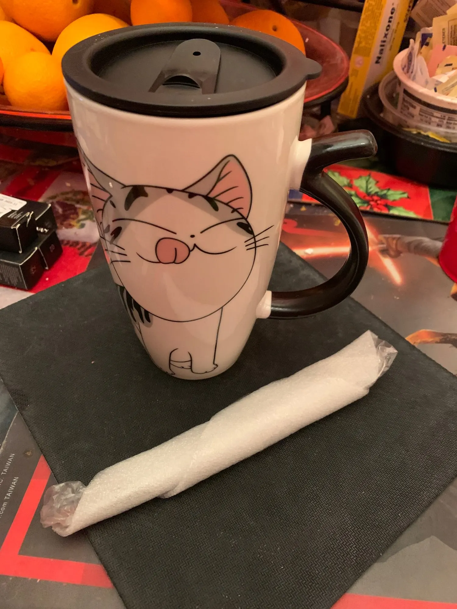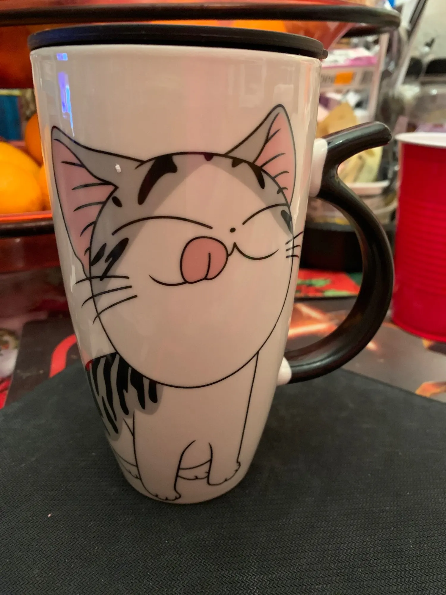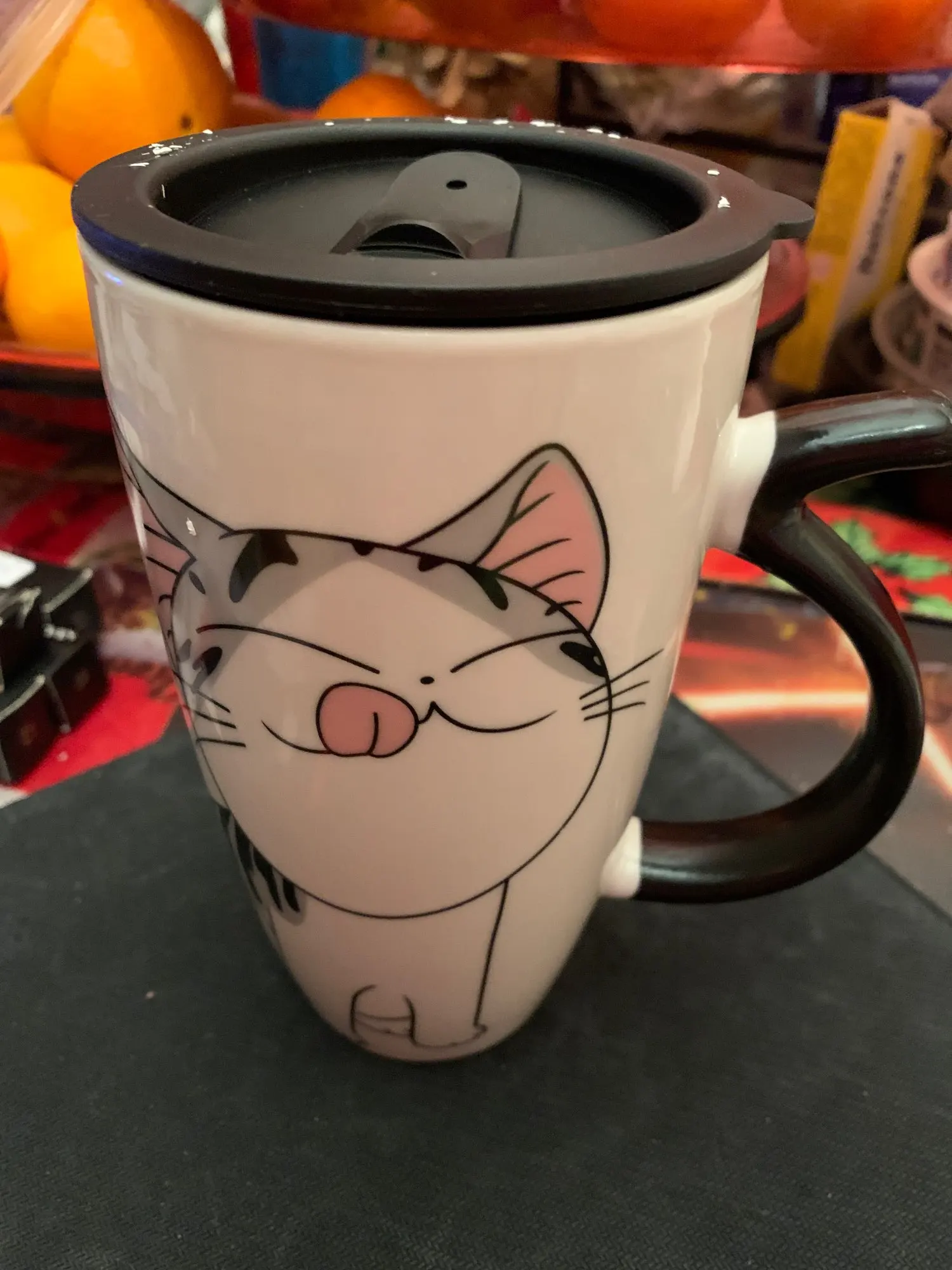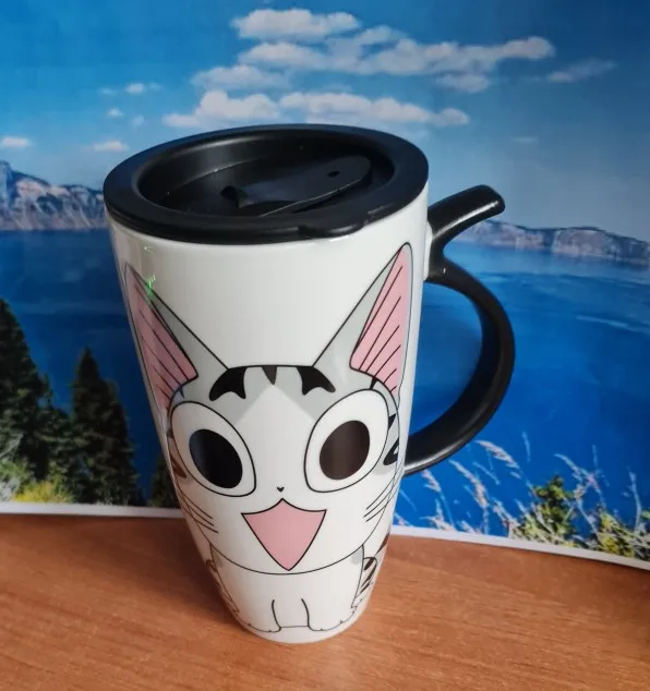 супер мега крутая кружка. чёткий рисунок. крышка закрывается плотно, не протекает. небольшой запах, но после мытья запах исчез. ложечка правда смешная. маленькая и коротенькая, приходится за самый кончик держать чтобы размешать. но это не критично, ведь кружка клёвая. быстрая доставка. спасибо.