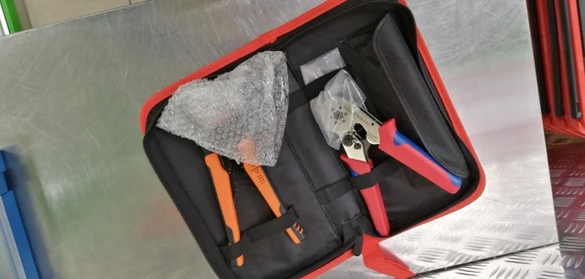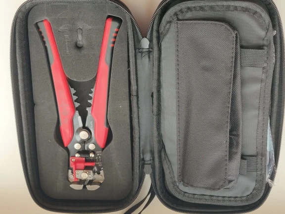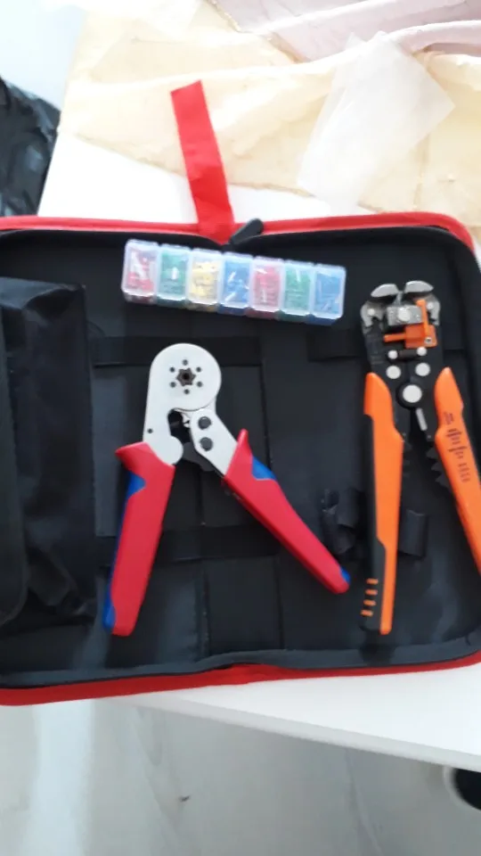 Получил в помятой картонной каробке, все целое и работает, только требуется регулировка обоих инструмеетов для оптимальной зачистки проводов и хорошего обжима, товаром доволен как бобик, спасибо продавцу.