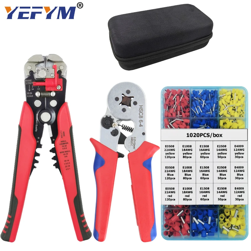 Трубчатые обжимные плоскогубцы, набор YE-1R, обжимные режущие плоскогубцы с клеммами 1020 шт., набор инструментов YEFYM HSC8 6-46-6