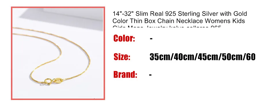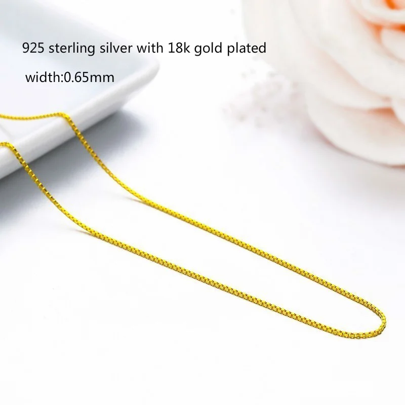 Тонкое тонкое ожерелье из настоящего серебра 925 пробы с золотой цепочкой в коробке, 14-32 дюйма, мужские и женские ювелирные изделия для девочек и мужчин, колье 065