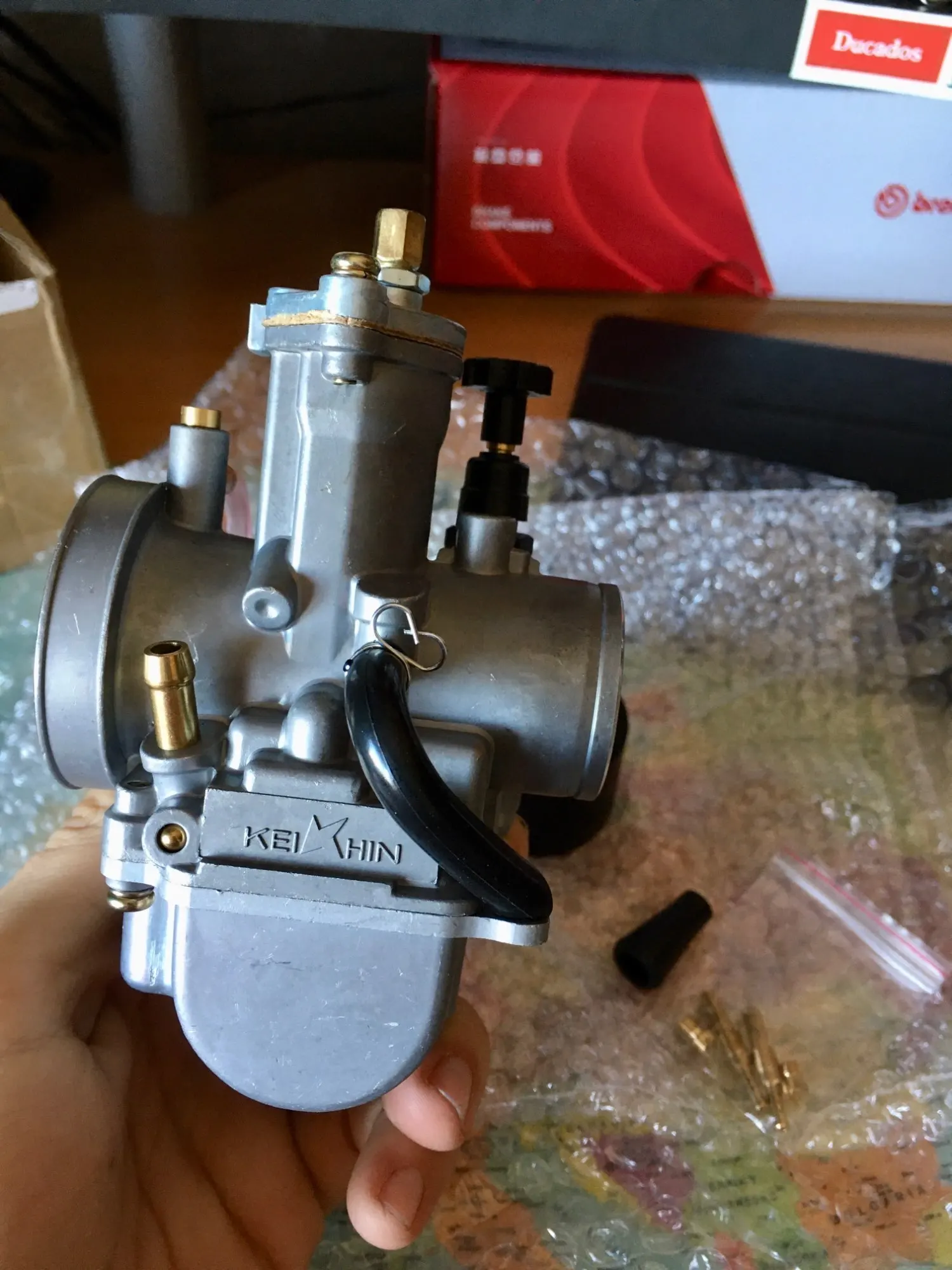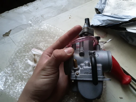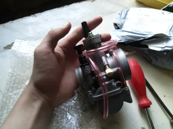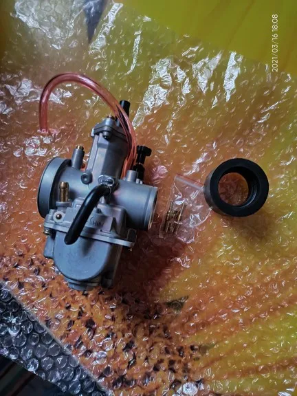 Пришёл быстро!. Поставил на самоделку 160 кубов . Мотор от питбайка. Заводится и едет просто отлично !!! Не регулировал особо. Но плавает холостой ход. Фильтр пока не поставил. Может наладится.