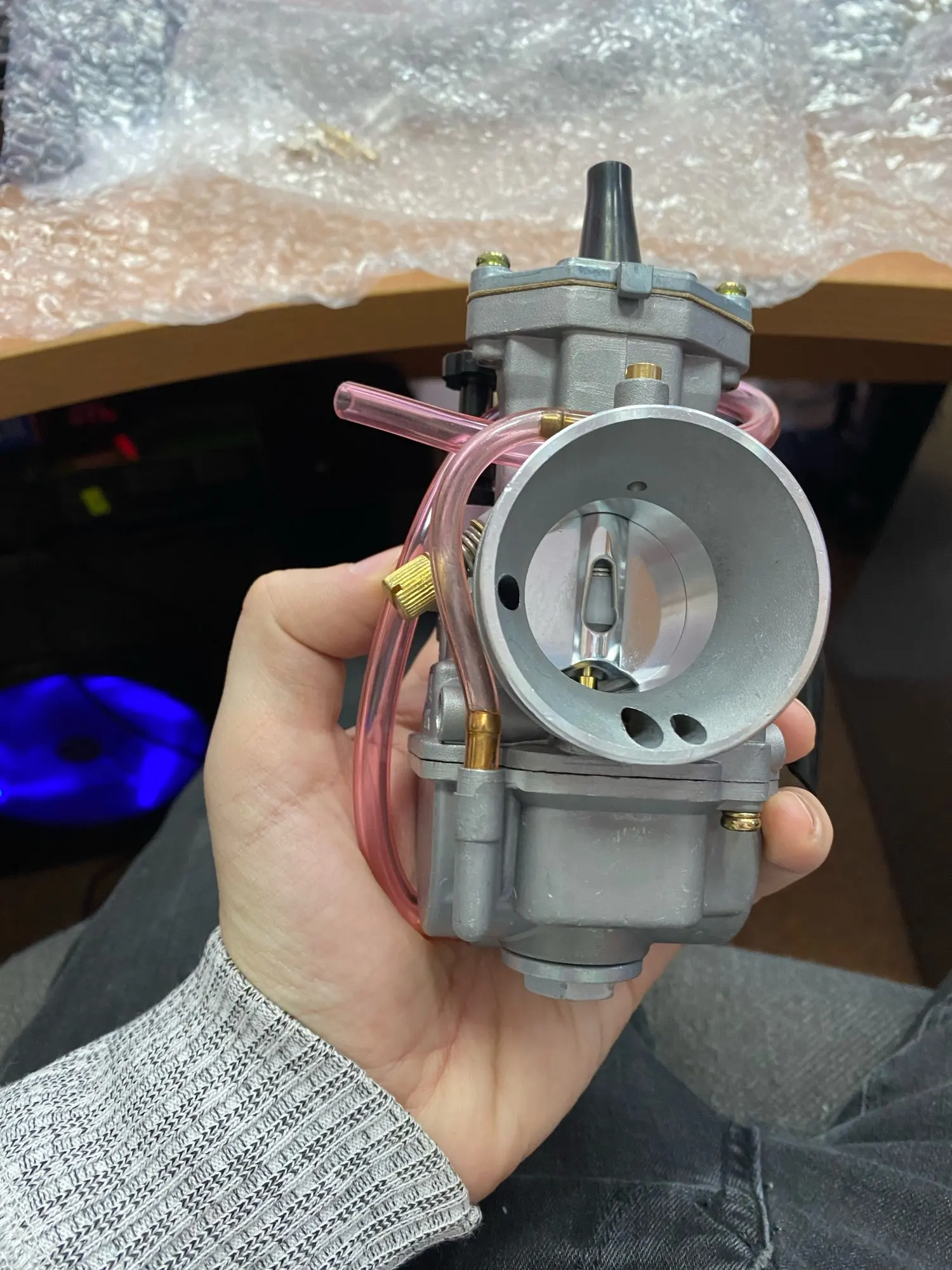 Выглядит очень добротно, пришел за месяц, примерно, стружки внутри не было, в комплекте разные жиклеры. Много бутафорских трубок, например-черная трубка на хомуте одета на железную трубку, которая заглушена, с другой стороны так-же и сверху две глухих бронзовых вставки, видимо, чтобы придать вид, как FCR, там они от перелива :). Но я всем доволен, отличный карб.