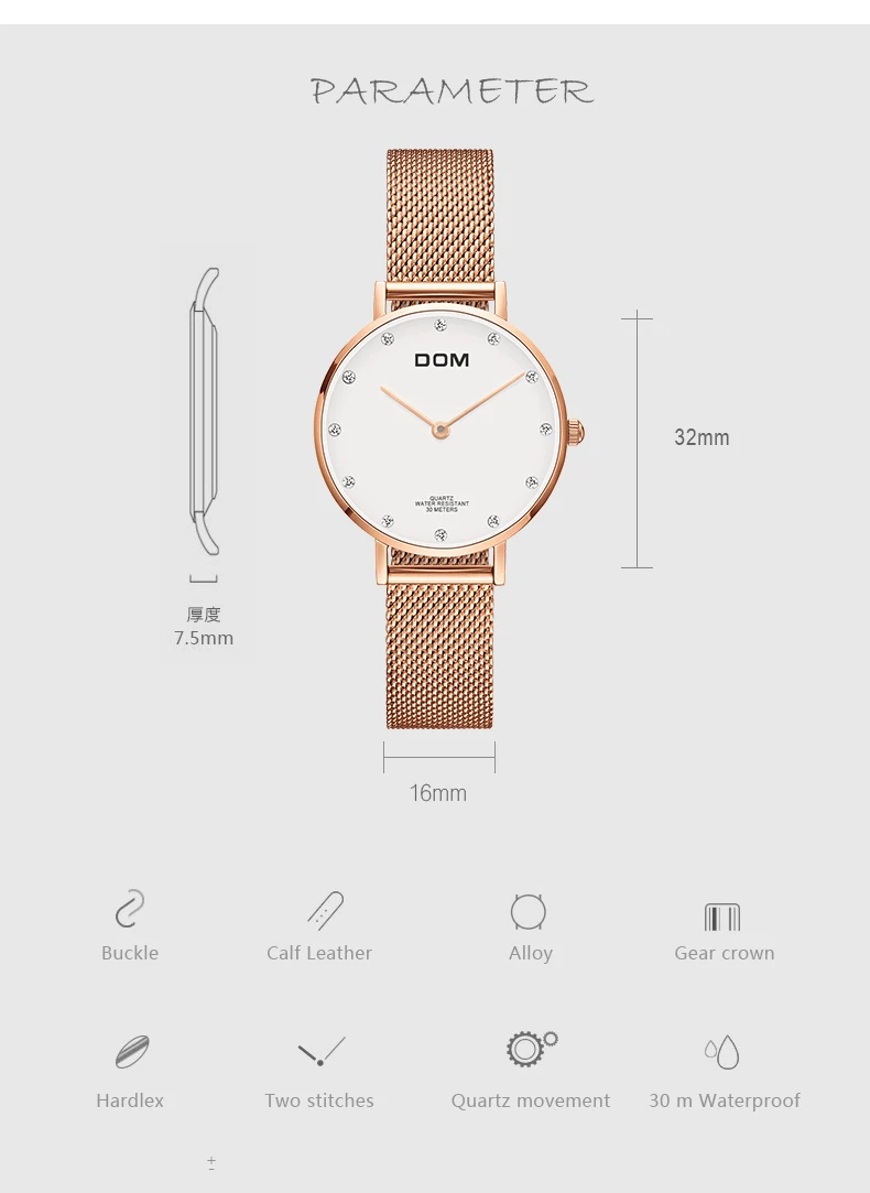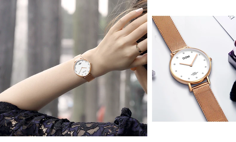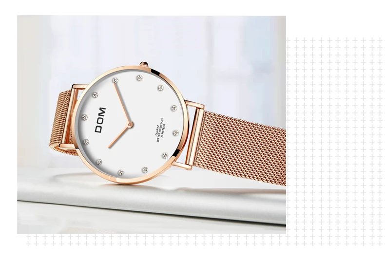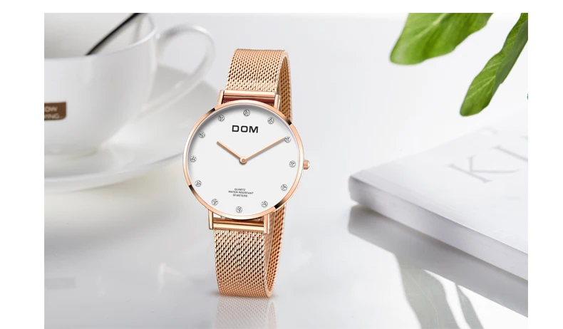 Часы женские DOM топовые брендовые Роскошные Кварцевые часы, повседневные кварцевые часы с кожаным сетчатым ремешком, ультратонкие часы, часы Relog для женщин, с ремешком, с ремешком, на ремешке, на ремешке, с ремешком, на ремешке, для женщин