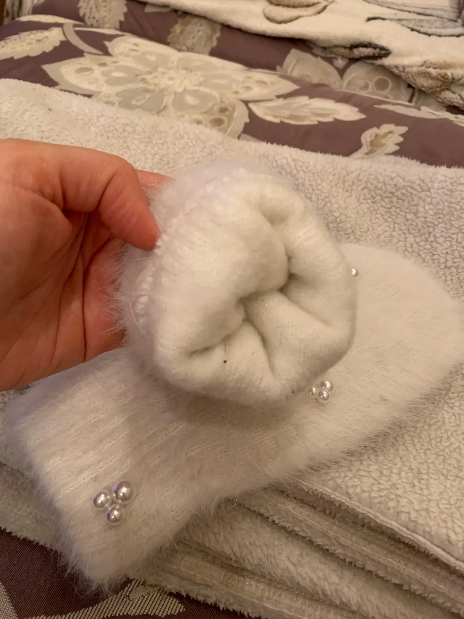 Крутые! Белоснежные!!! Все бусинки на месте! Надо брать! Мягкие, плотные и явно тёплые! Очень понравились!
