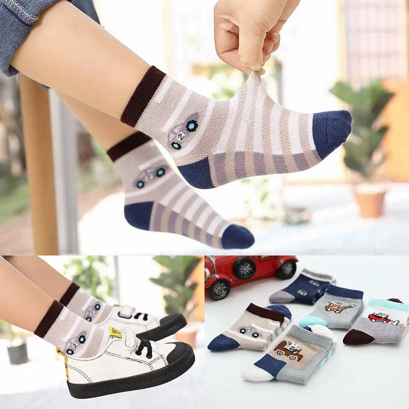 2018 весенне-летние детские носки сетчатые дышащие хлопковые носки для мальчиков и девочек с машинками От 3 до 12 лет Детские носки 5 парлот