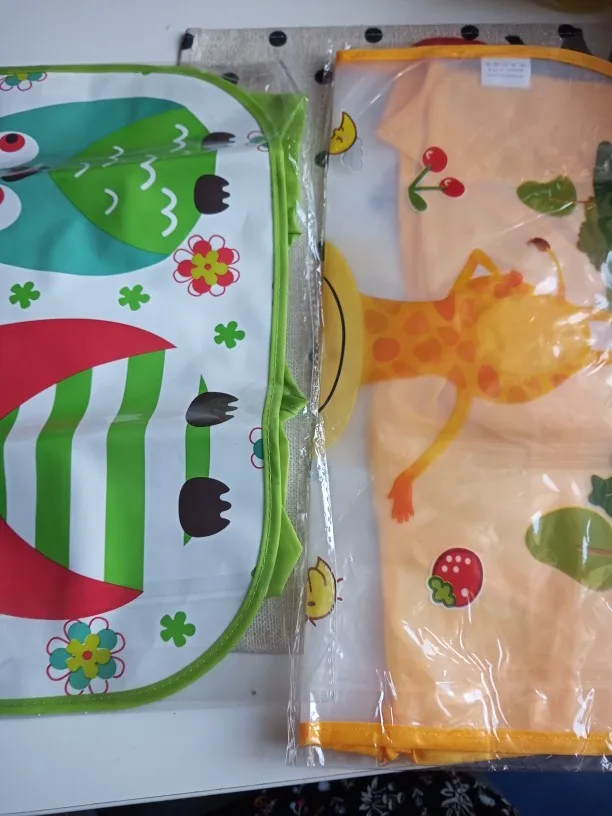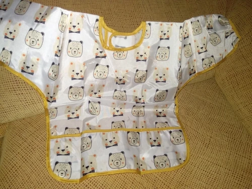 Excelente produto. São babetes com tecido impermeável por toda a parte. Perfeito