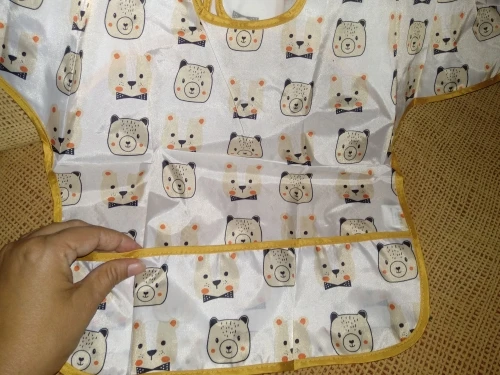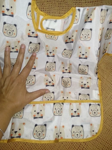 Слюнявчик Яркий, красивый , но ребёнок пока отказывается в нем есть, отвлекается на рукава , капризничает, посмотрим что дальше будет.