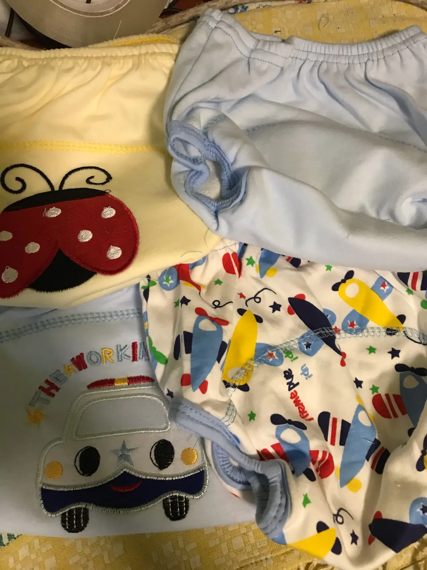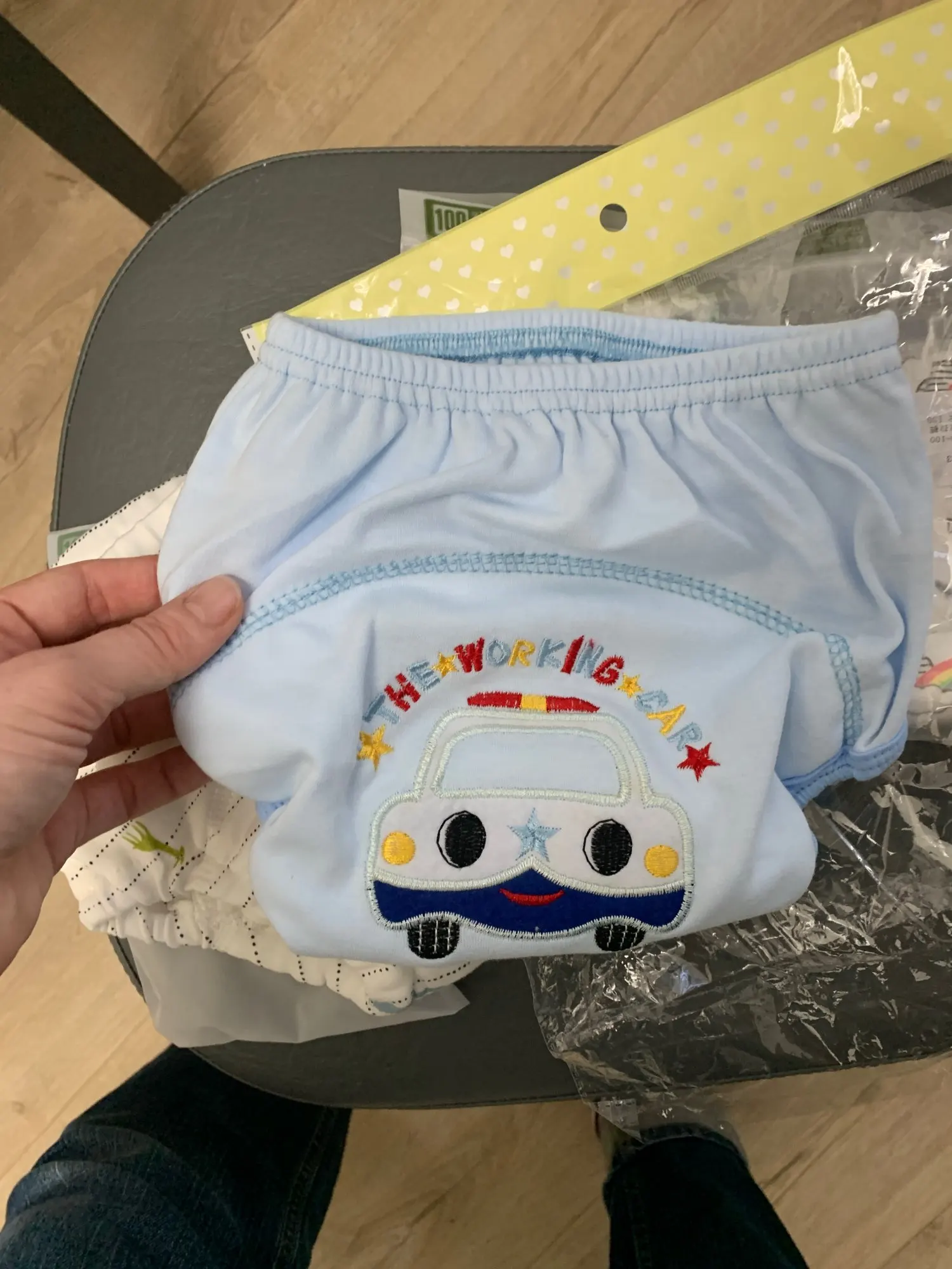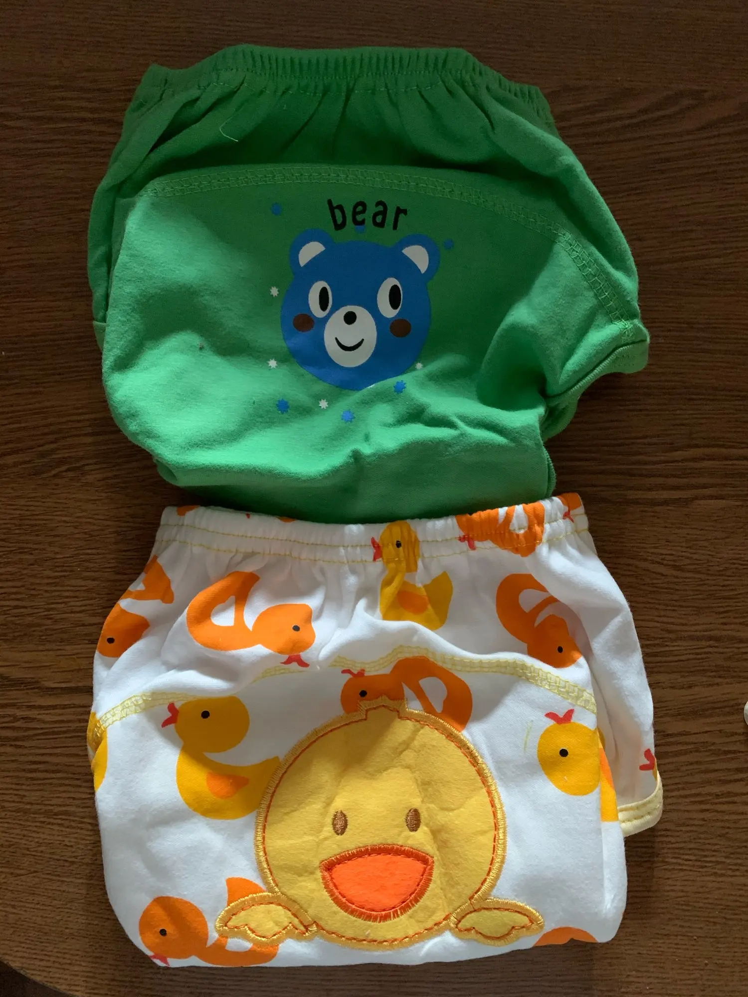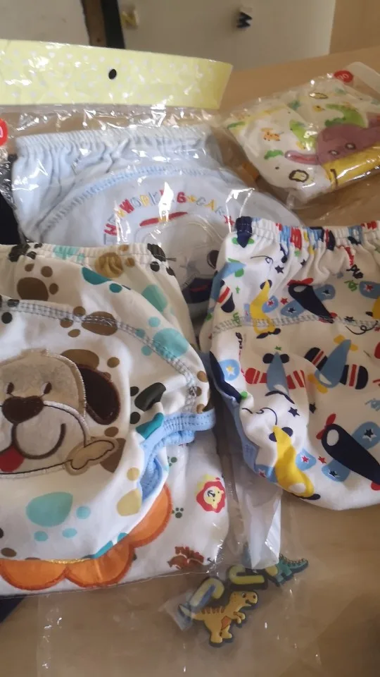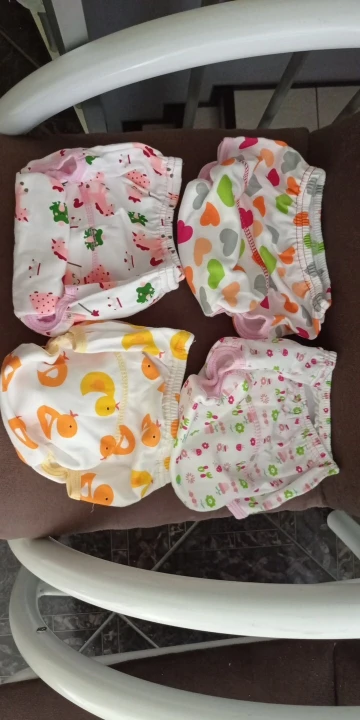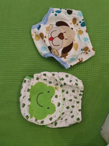 As cuecas são lindas e o material parece ser bem confortável. A forma delas é grande, o de 80cm serve perfeitamente no meu filho de 1 ano e 8meses e 11kg. Comprarei mais.
